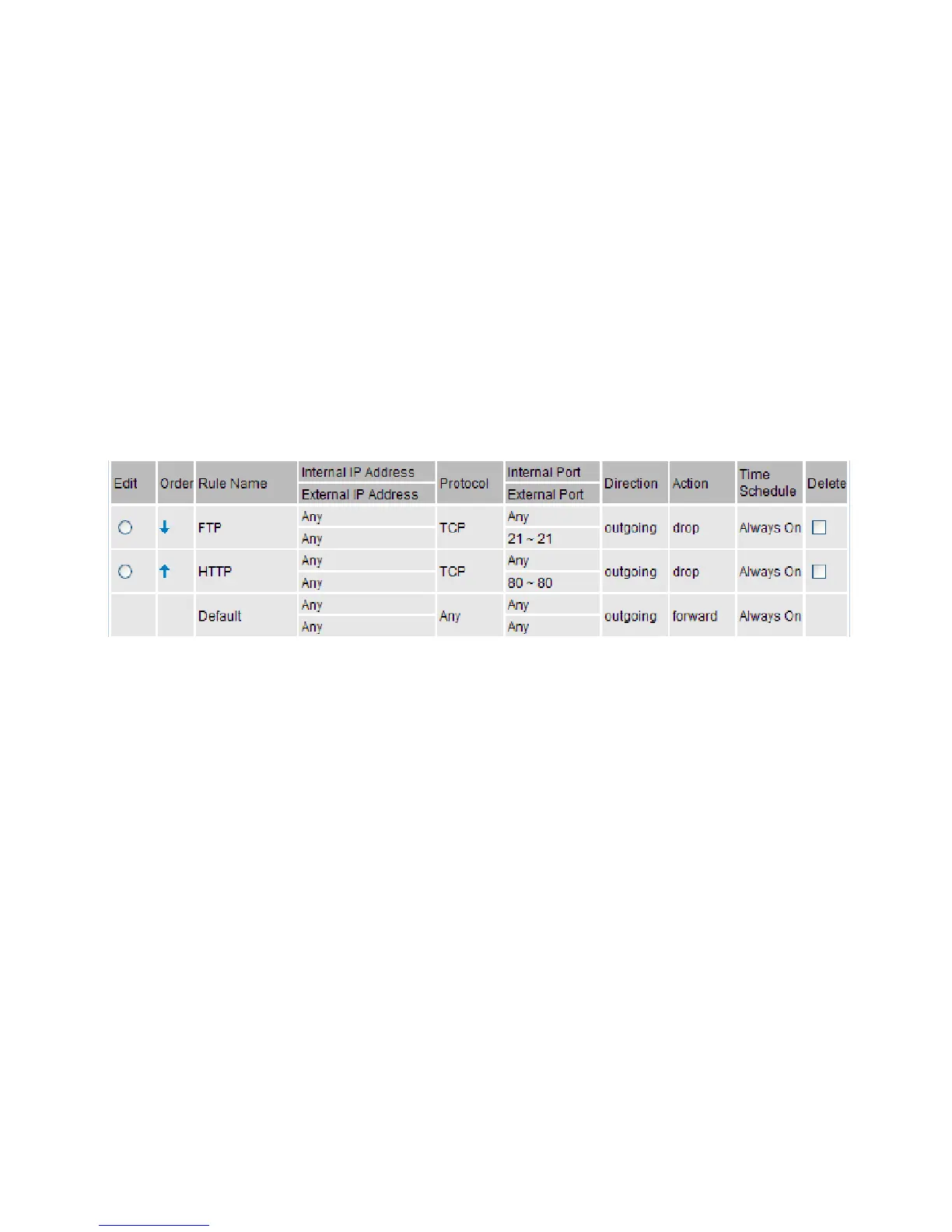 Click this button to add a new packet filter rule and the added rule will appear at the bottom