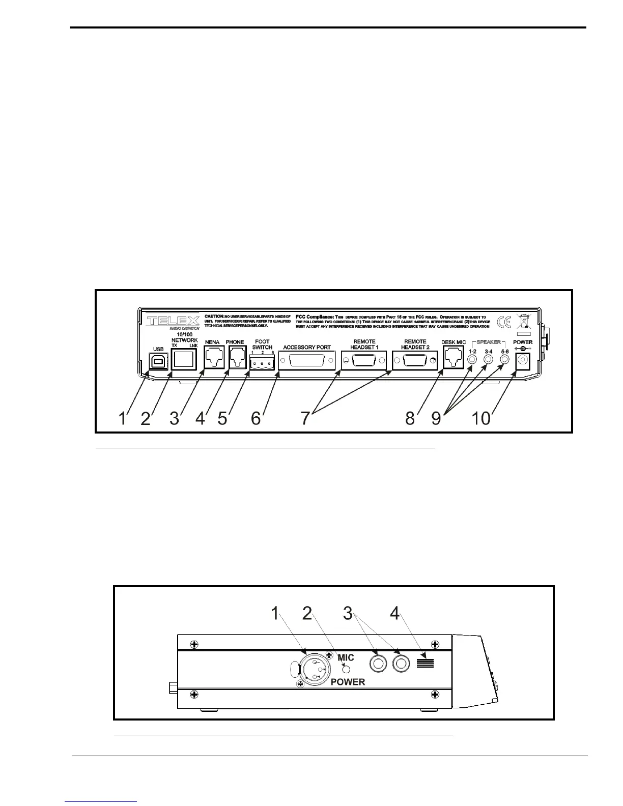 7. REMOTE HEADSET Ports (1 and 2) - The REMOTE HEADSET ports (1 and 2) are used to connect an optional