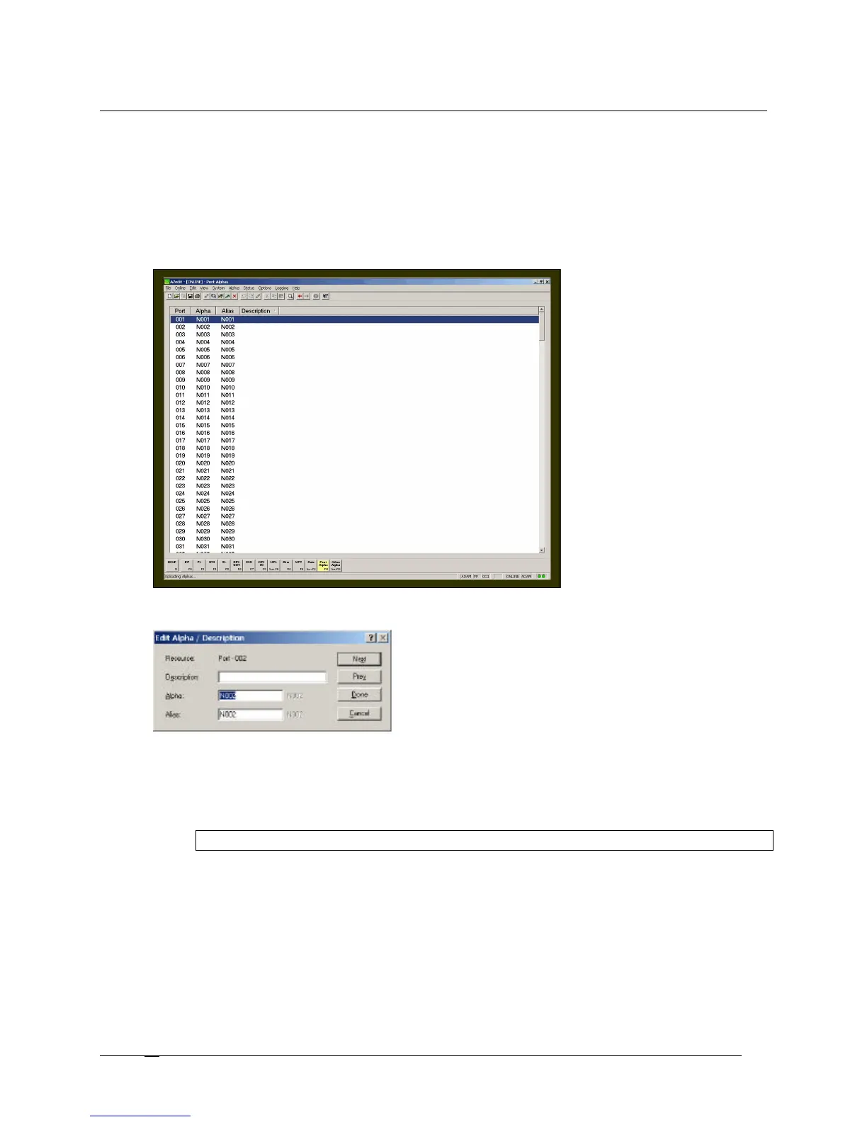 Intercom ports have names called Alphas. As a default, they have generic names, such as N001, N002, etc. Alphas