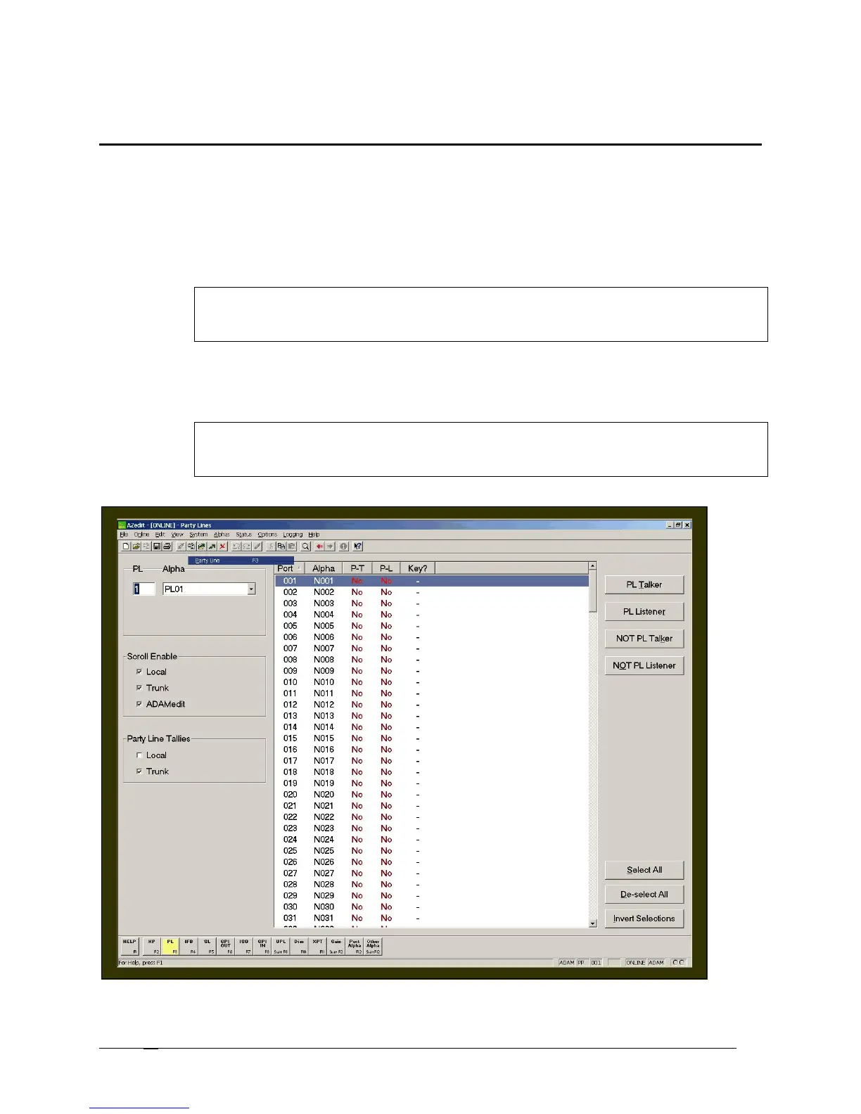 screen. Once the party line is established, it can be assigned to a keypanel using the Keypanel setup screen (for