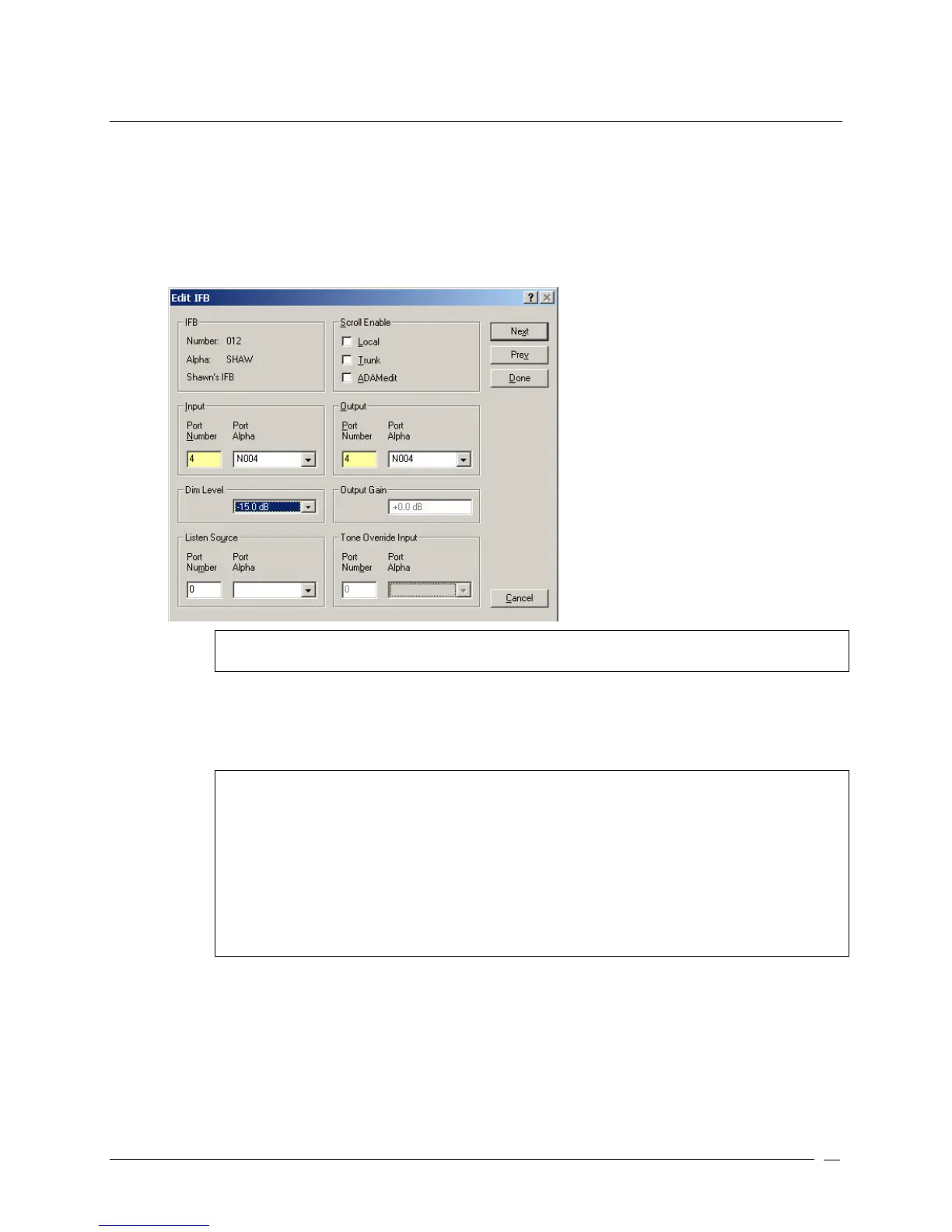 • The Listen Source field is only used for 2-way IFB operation. It allows keypanel operators and/or