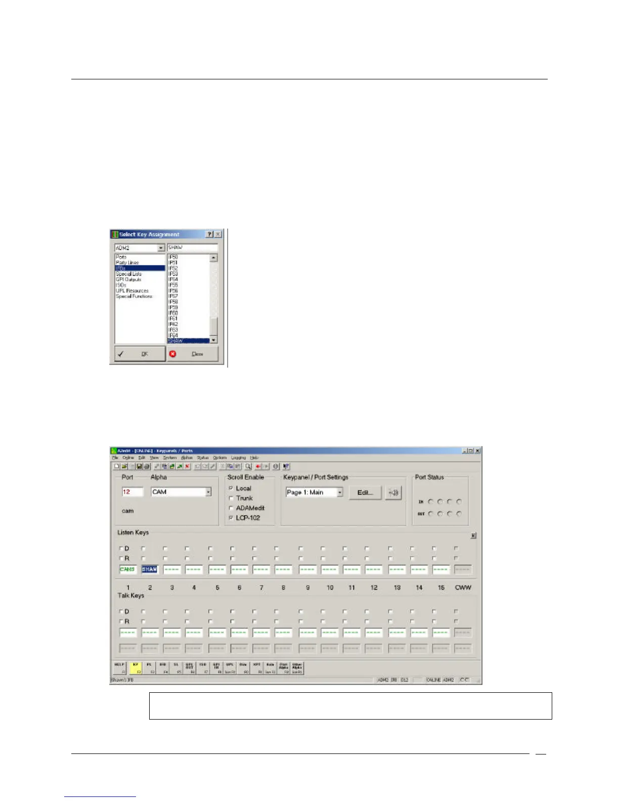 Once you have assigned ports that can talk or listen to the party line, you can assign it to a keypanel so that users