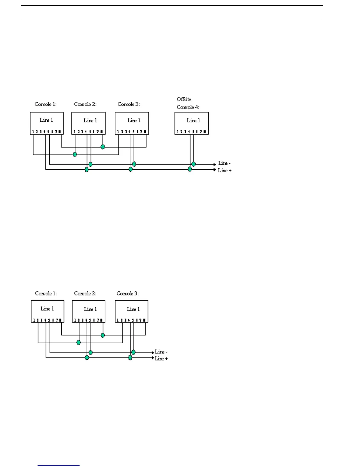 Assuming console 1 has supervisory capability, when activated, Line 1 on parallel consoles 2 and 3 would then be inhibited