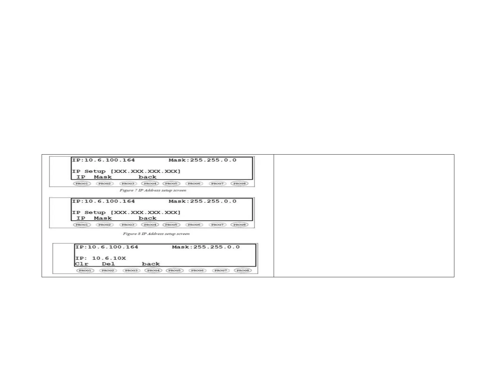 proper values. The following keys are used to enter the IP dotted quad once PROG1 or PROG2 is