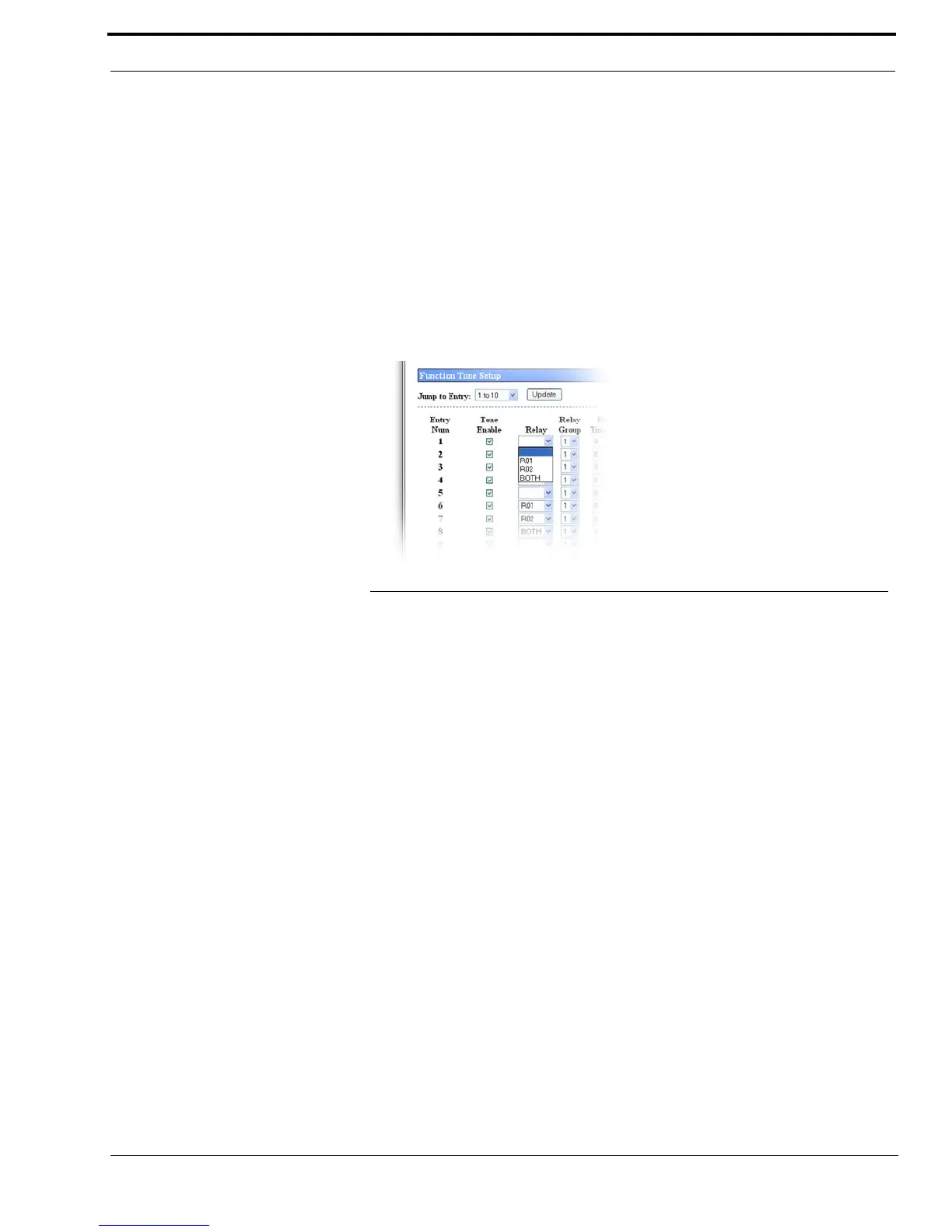 The Relay drop down menu identifies the relay(s), if any, closed immediately upon receipt of the function tone.