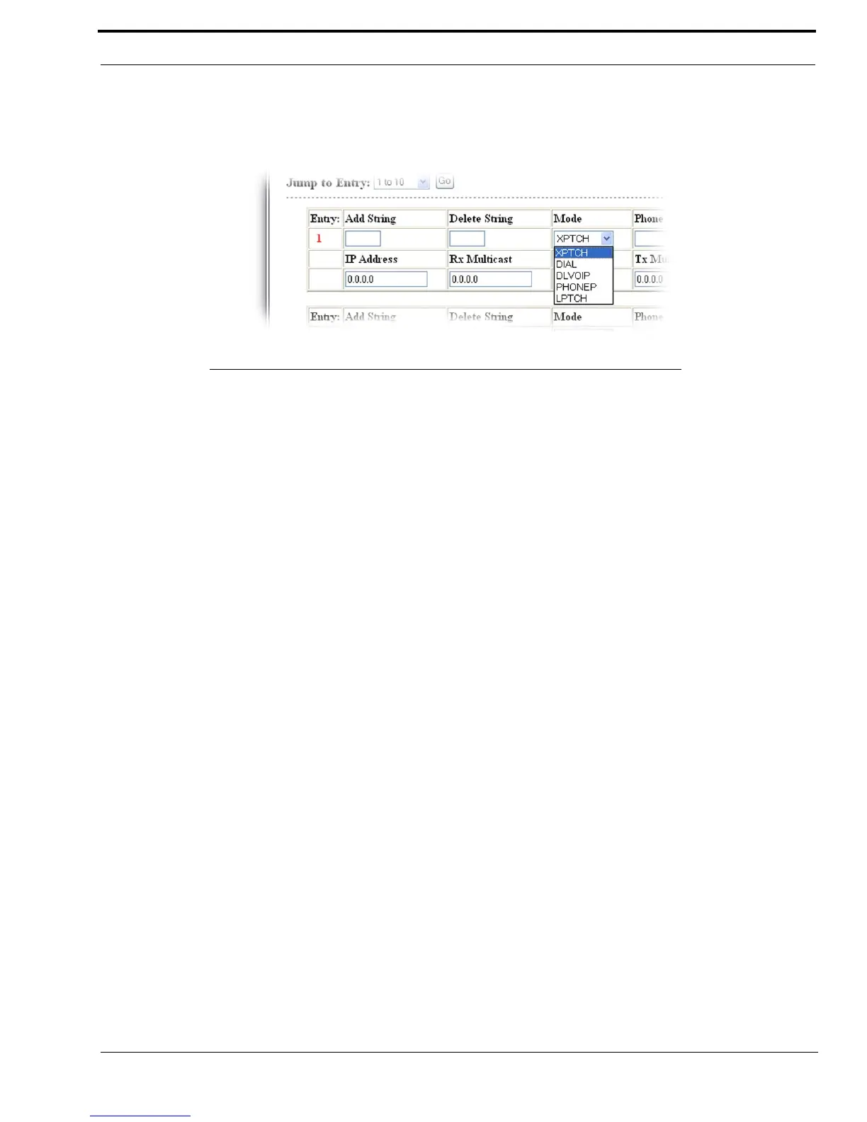The Mode drop down menu identifies the crosspatch mode used for the crosspatch entry number.