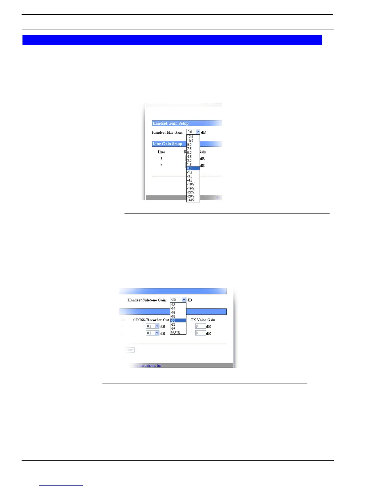 The Handset Mic Gain drop down menu is used to set the level, in dB, of gain for the handset mic.