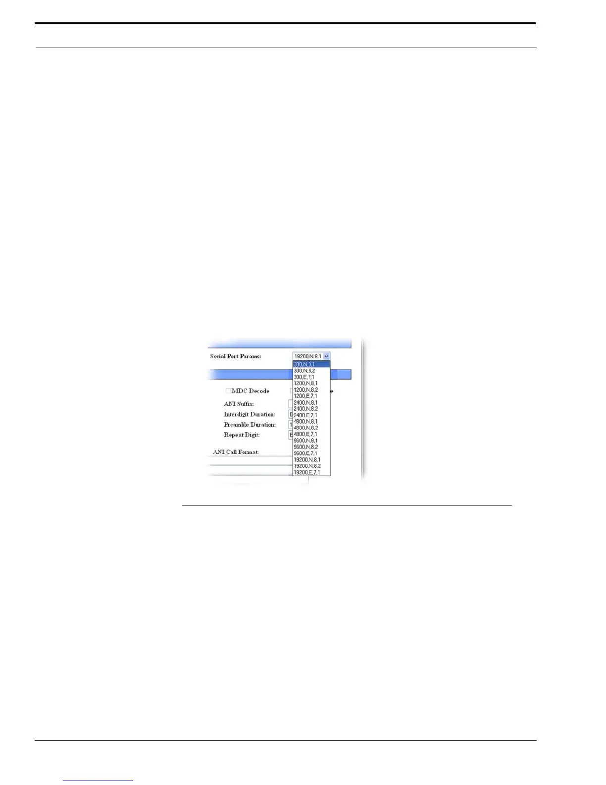 The Serial Port Params (Parameters) drop down menu identifies the configuration of the serial port data speed and format.