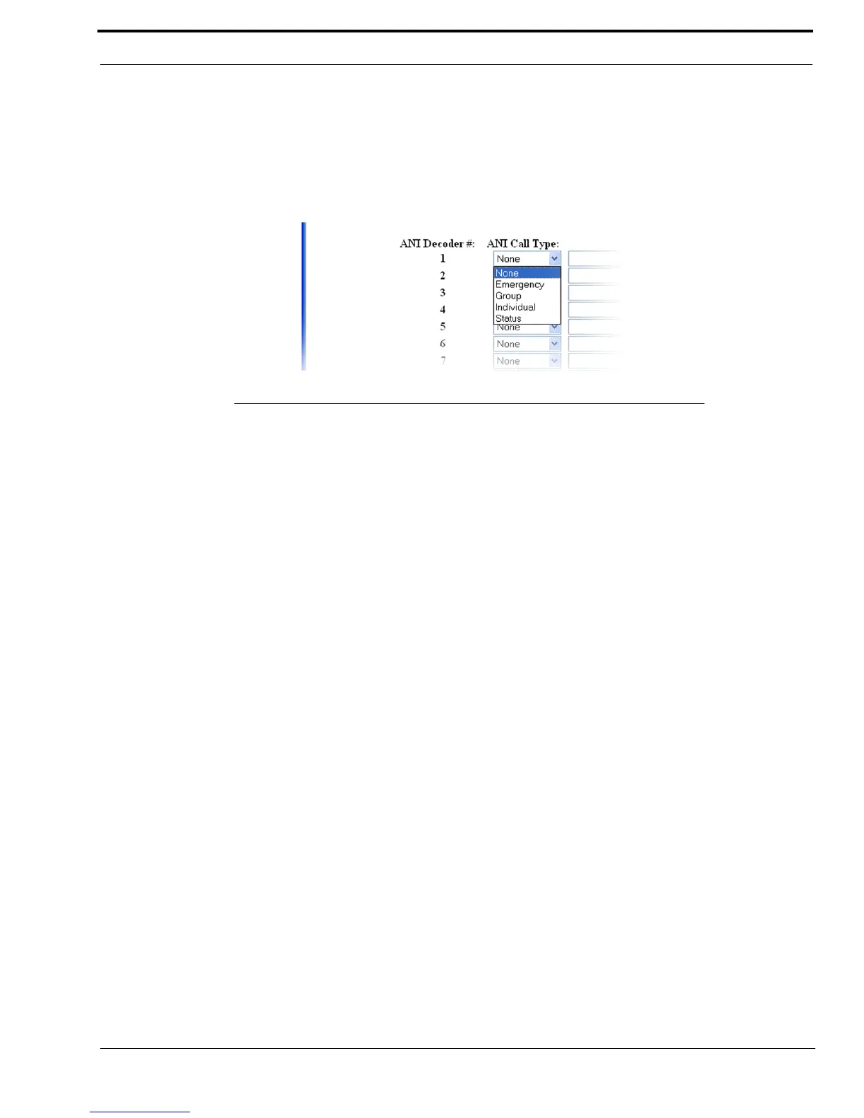 Available selections for this field are None, Emergency, Group, Individual, and Status.