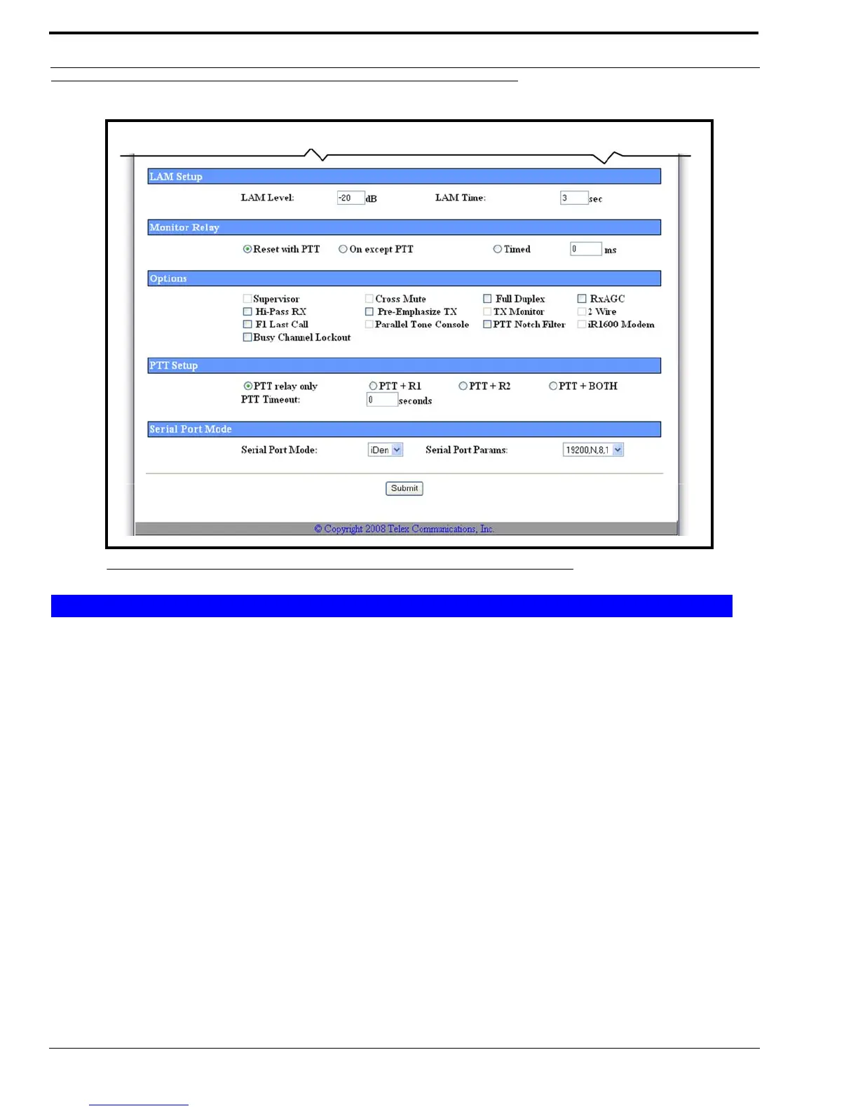 The LAM Level field identifies the threshold, in dB, at which the radio/line unmutes and sends RX packets to the Ethernet.