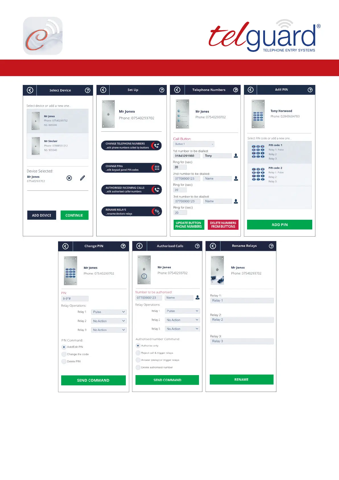 The settings and features are programmed using Commtel GSM One App and the SMS Short Command Guide which are both downloadable from