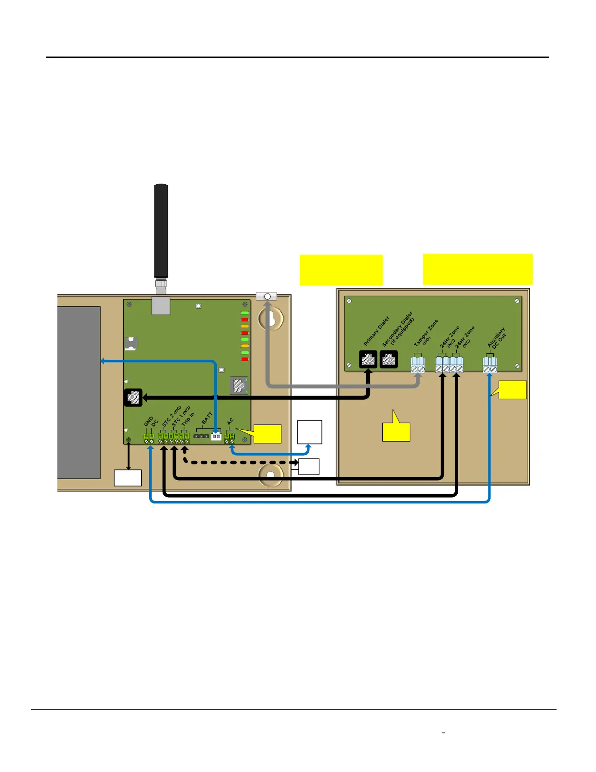 communicator enclosure. The wiring from the tamper switch assembly to the panel shall be in a rigid