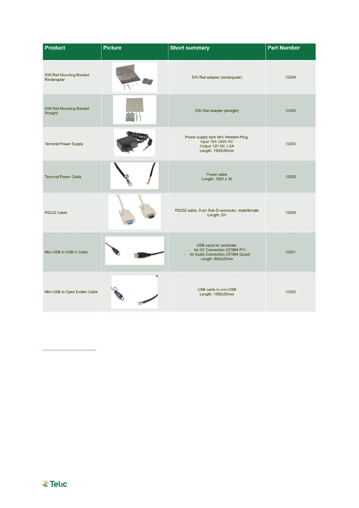 Please contact your distributor or Telic AG for availability or check Telic’s webpage