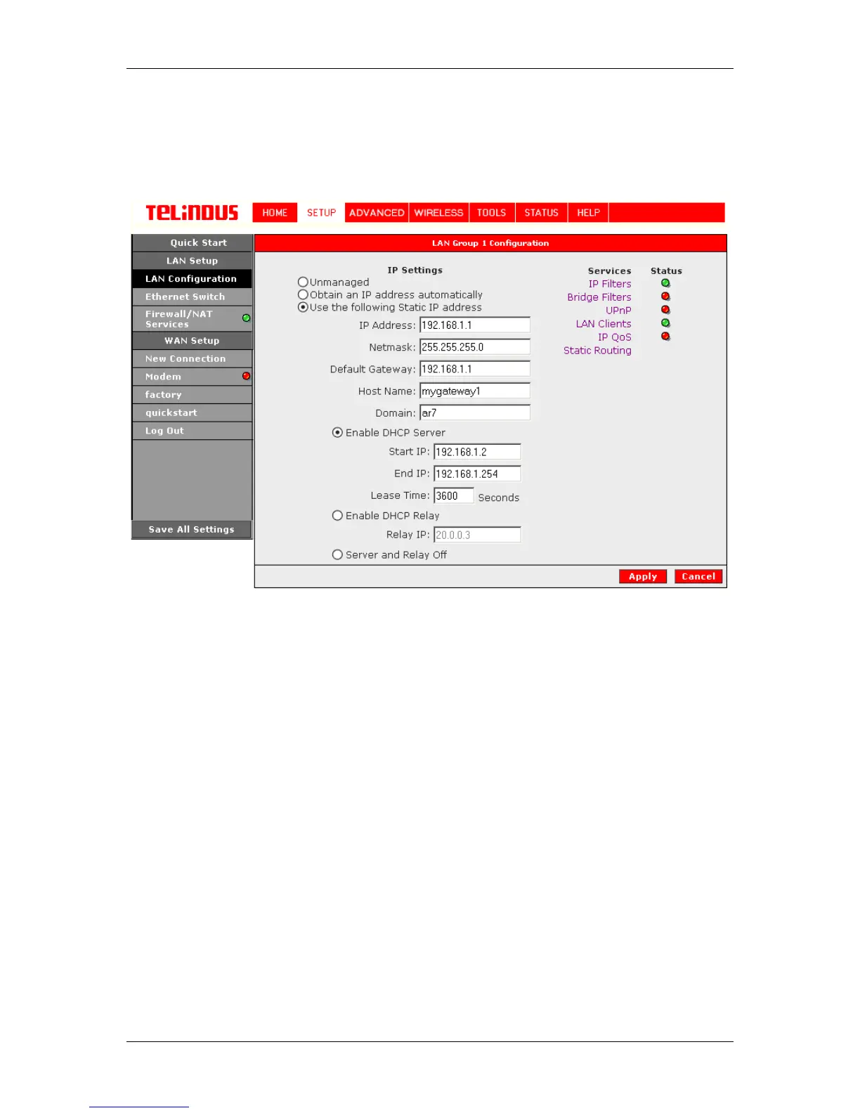 Router’s web pages the user can type 192.168.1.1 (the default IP address) or type
