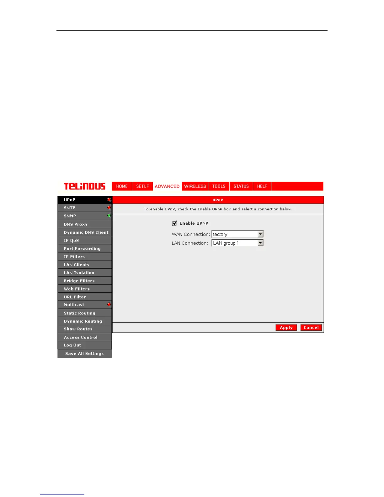 configured, click ADVANCED and select UPnP. This will bring up the screen shown in Figure 15.