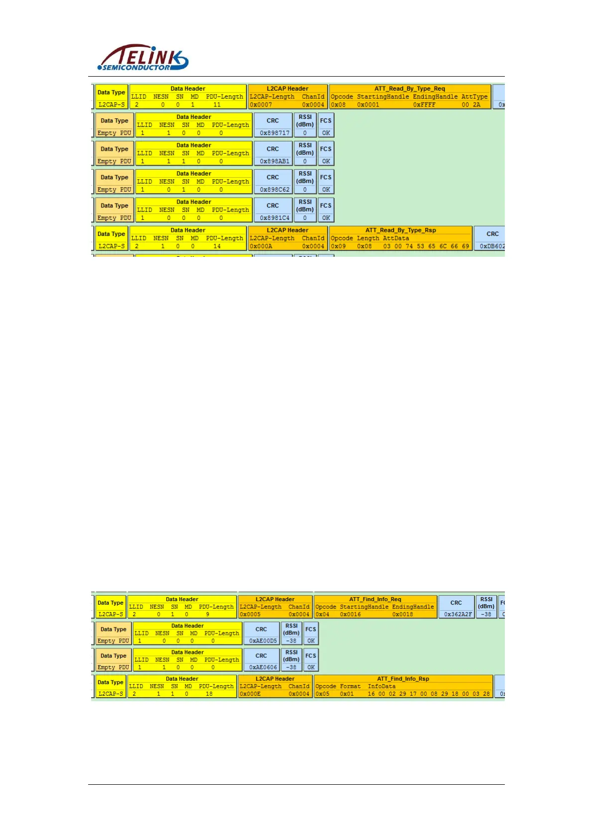 In the “Read by Type response”, attData length is 8, the first two bytes are current
