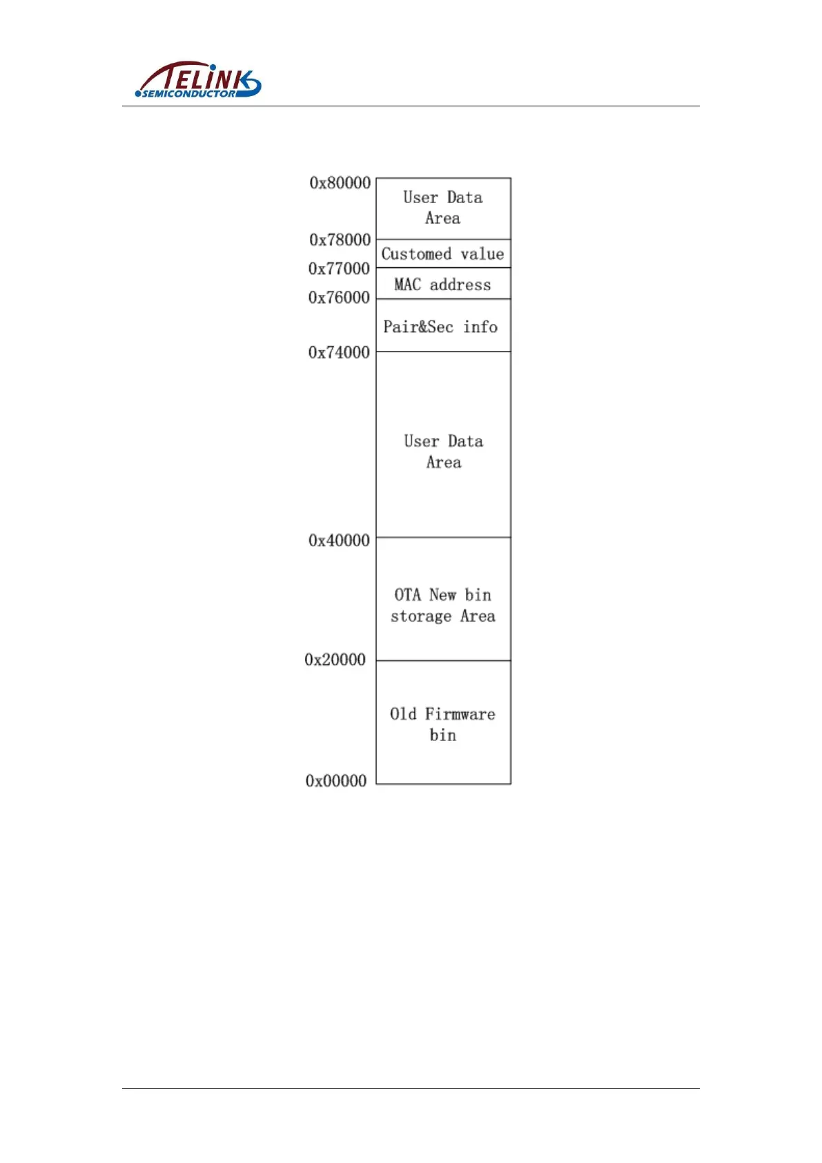 The figure above shows the default FLASH space allocation for TLSR8232F512 IC.