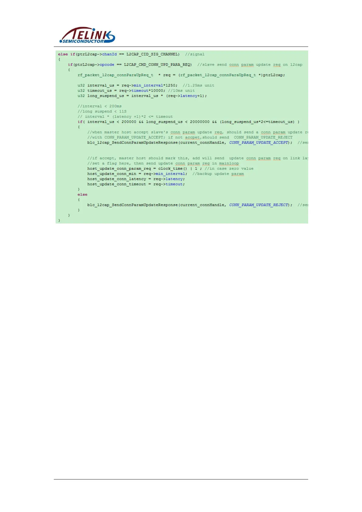 “host_update_conn_param_req” is used as mark, and a 50ms delay is set in mainloop to