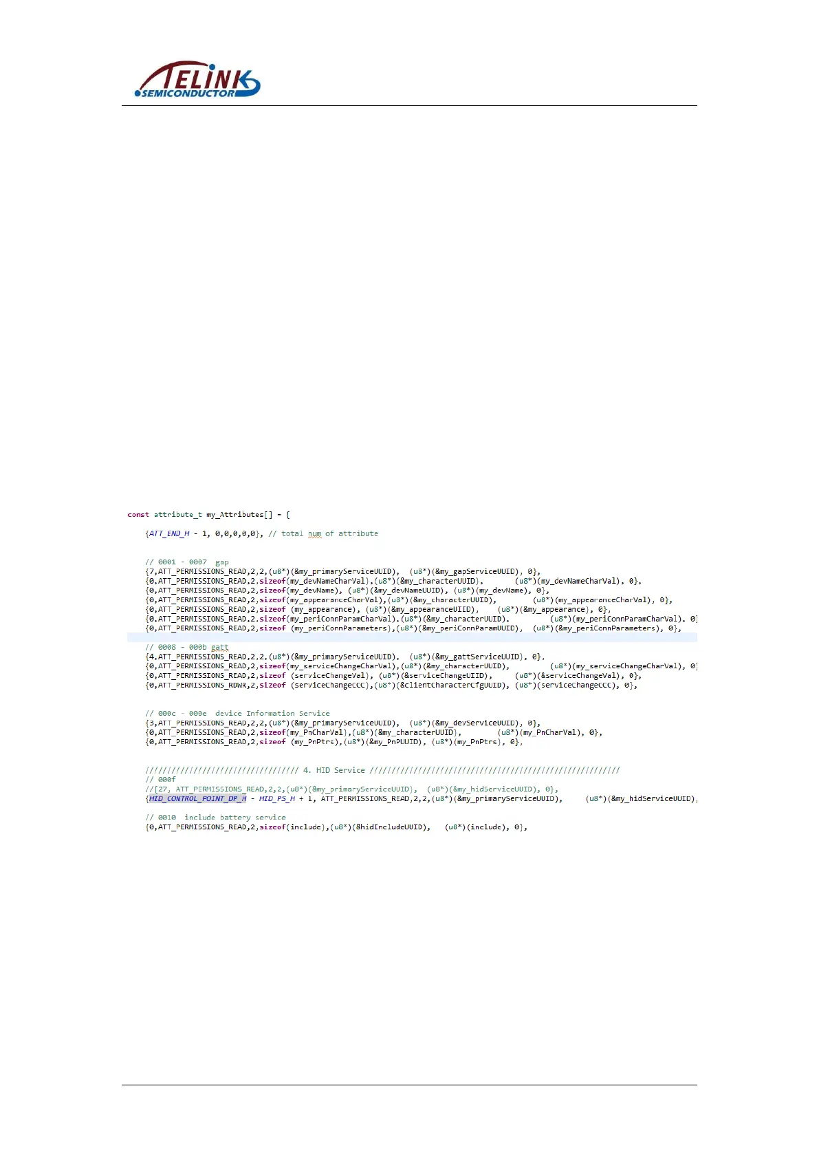 To implement GATT Service on Slave, an Attribute Table is defined in 5316 BLE SDK