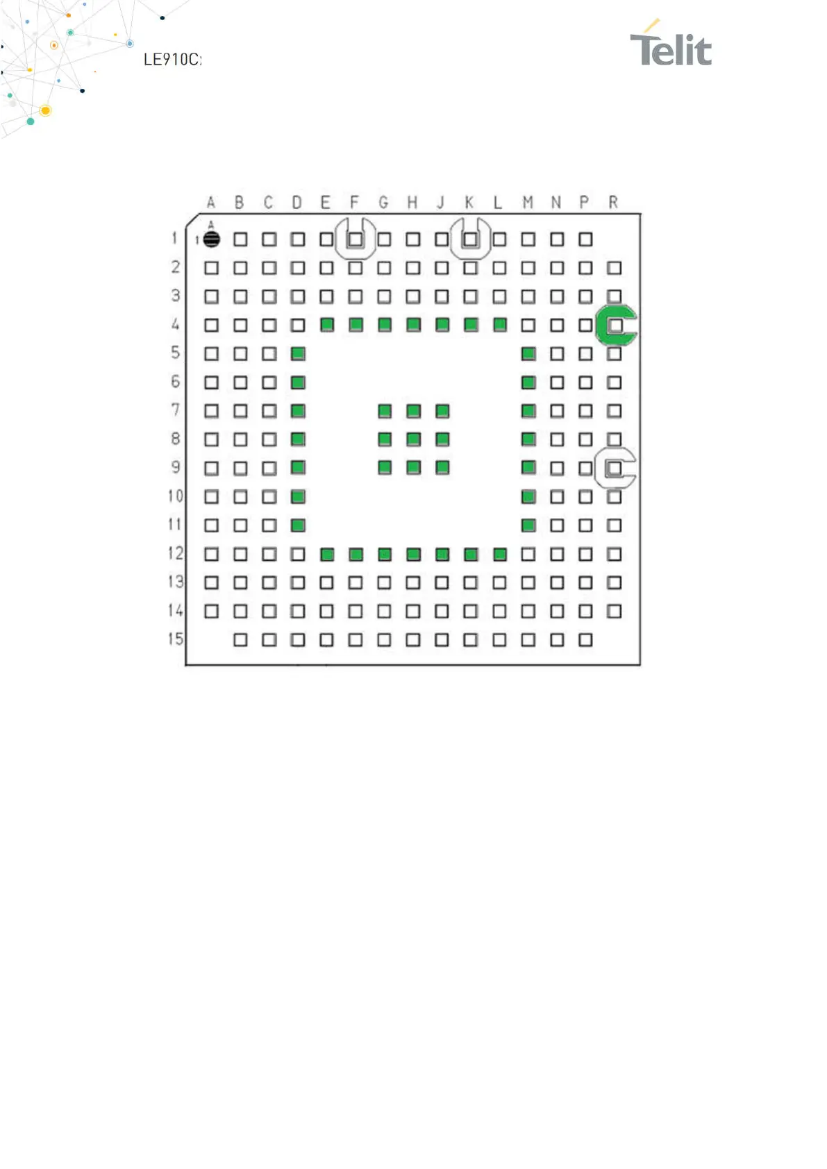 The additional pins of the LE910Cx are shown in Figure 3 (marked Green)