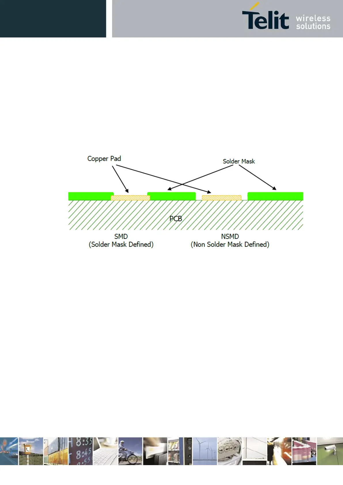 The solder pads on the PCB are recommended to be of the Non Solder Mask Defined (NSMD) type.