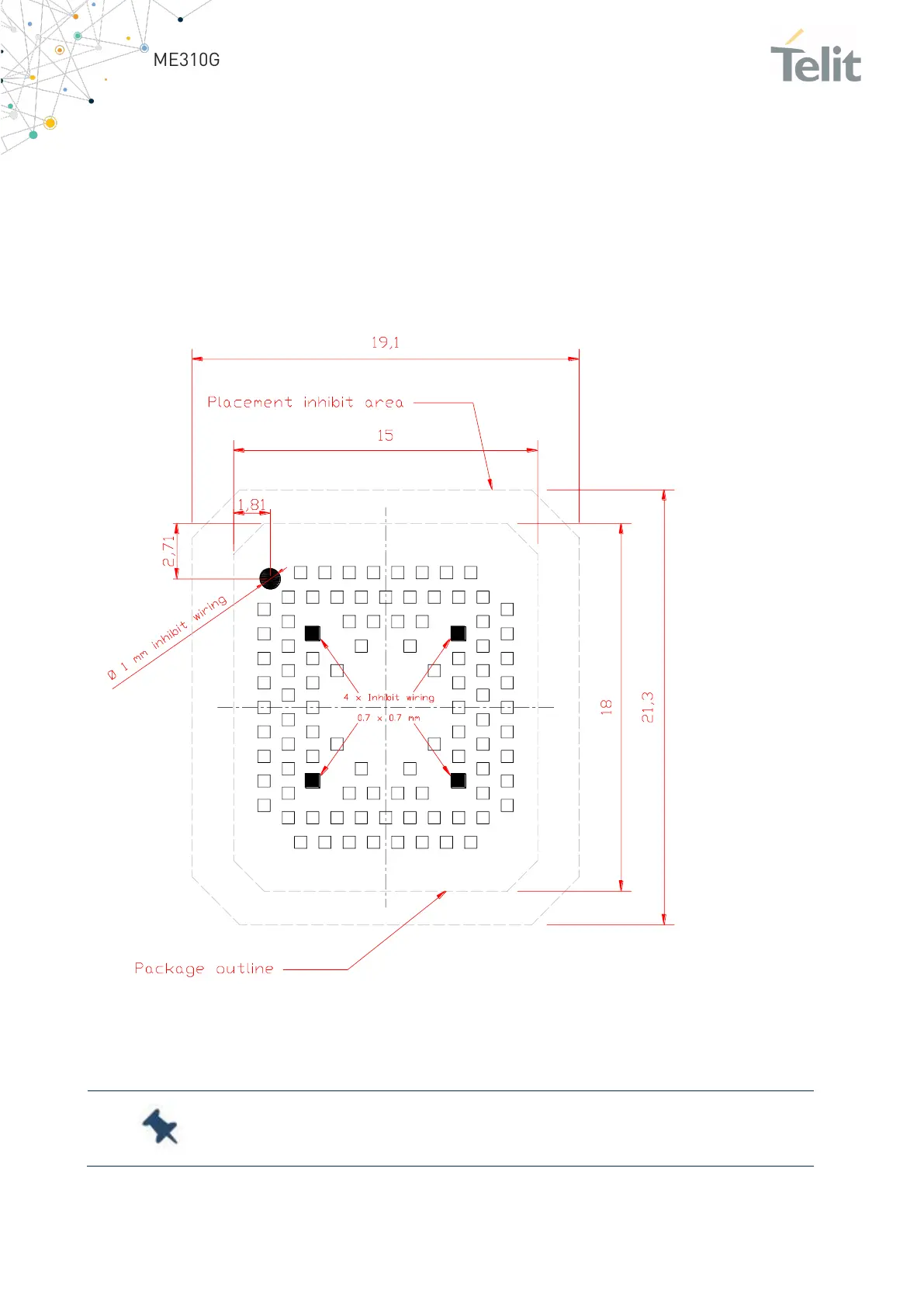 This section illustrates the application placement inhibit area for the ME310G1 models