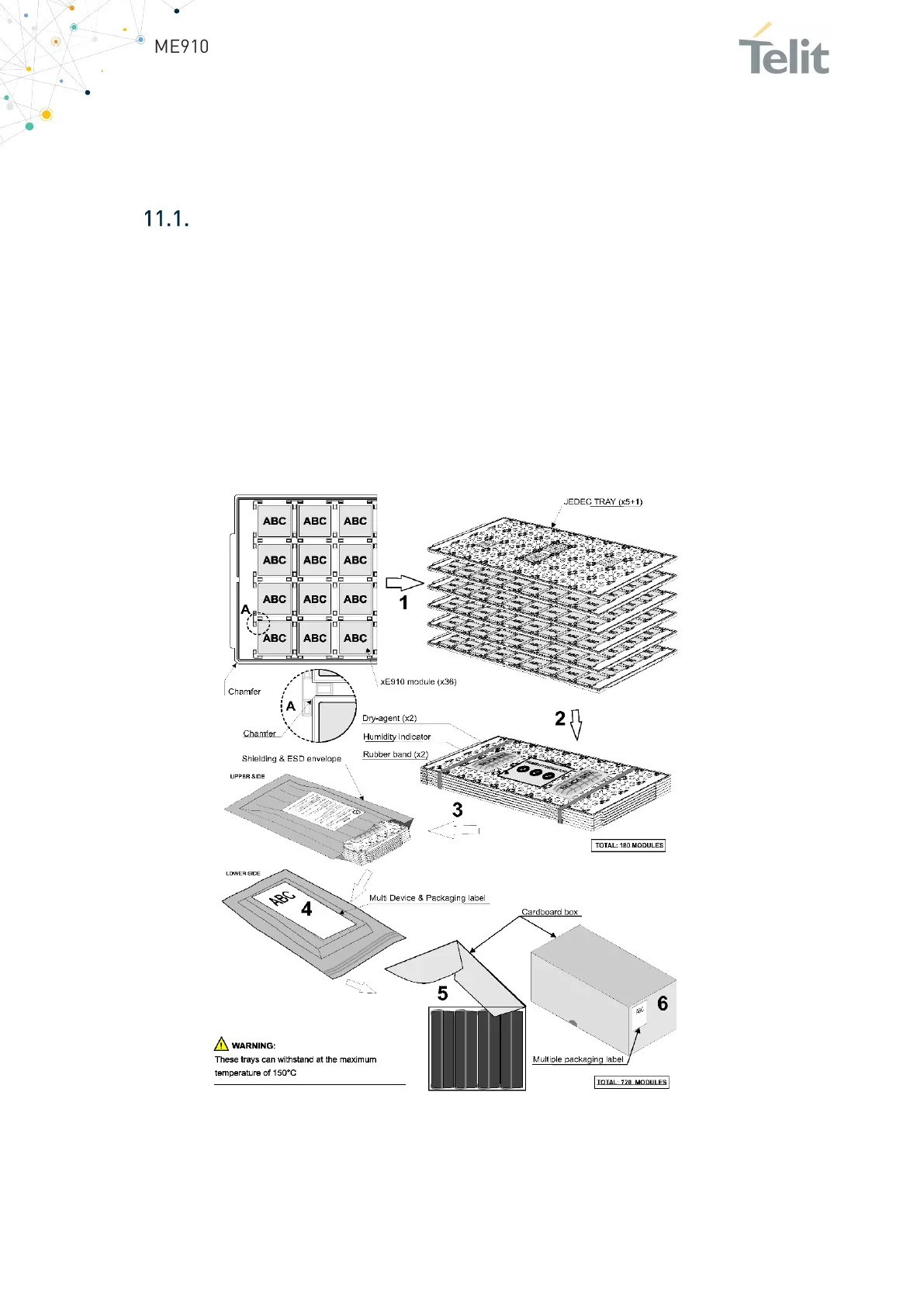 The ME910 modules are packaged on trays that can be used in SMT processes for pick &