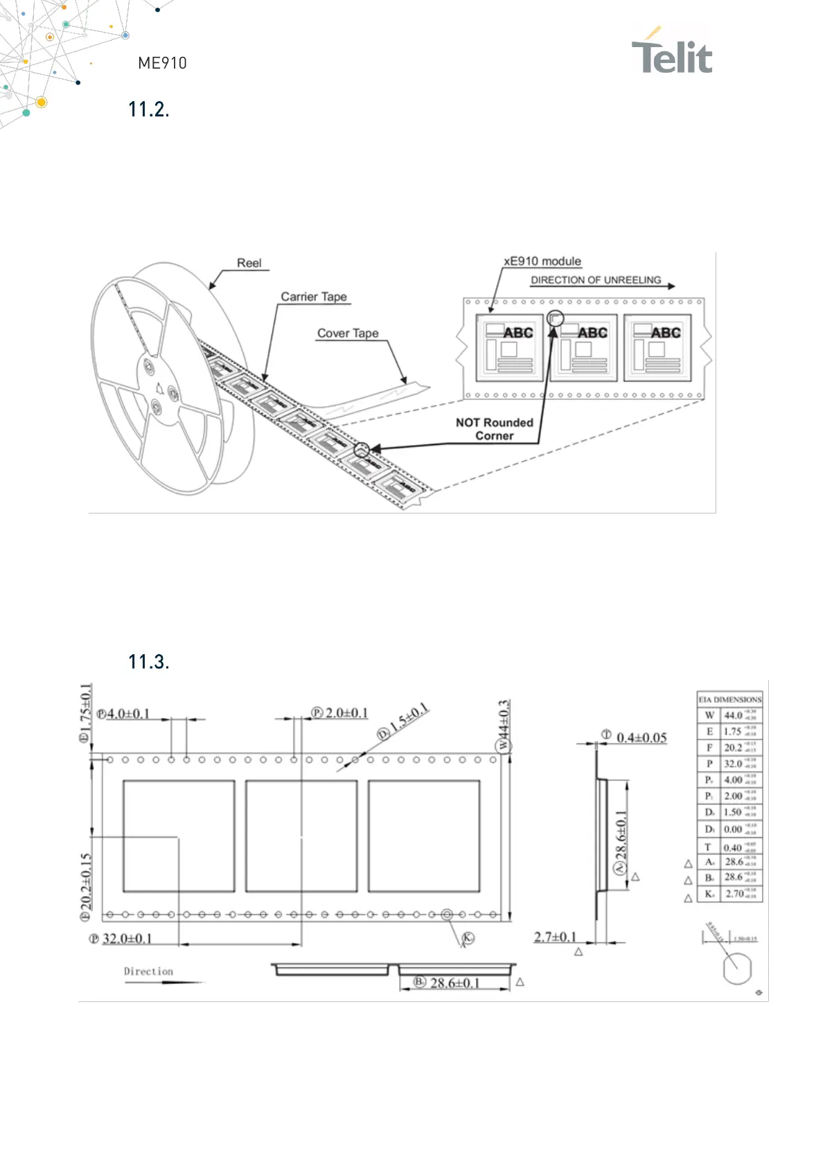Telit Wireless Solutions ME910G1 - Reel; Carrier Tape Detail