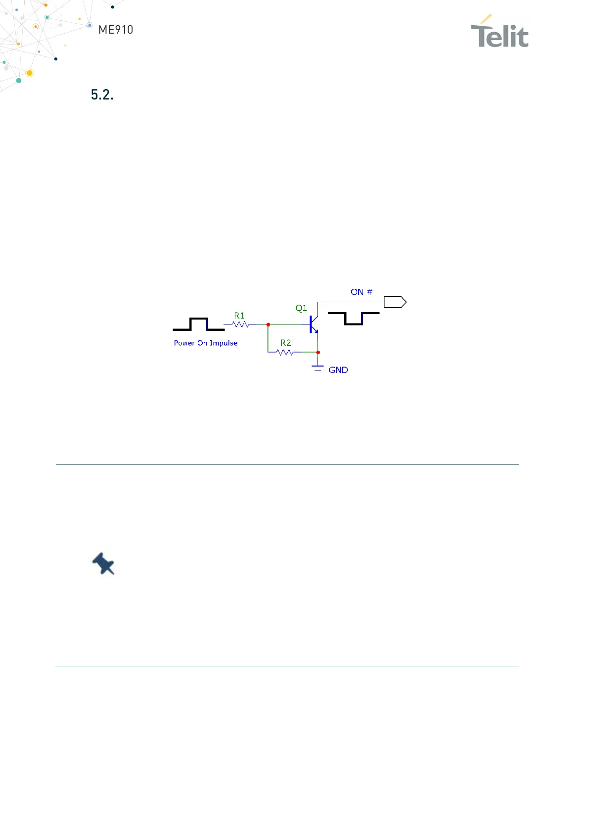 To turn on the ME910G1 the pad ON_OFF*/WAKE* must be tied low for at least 5 second