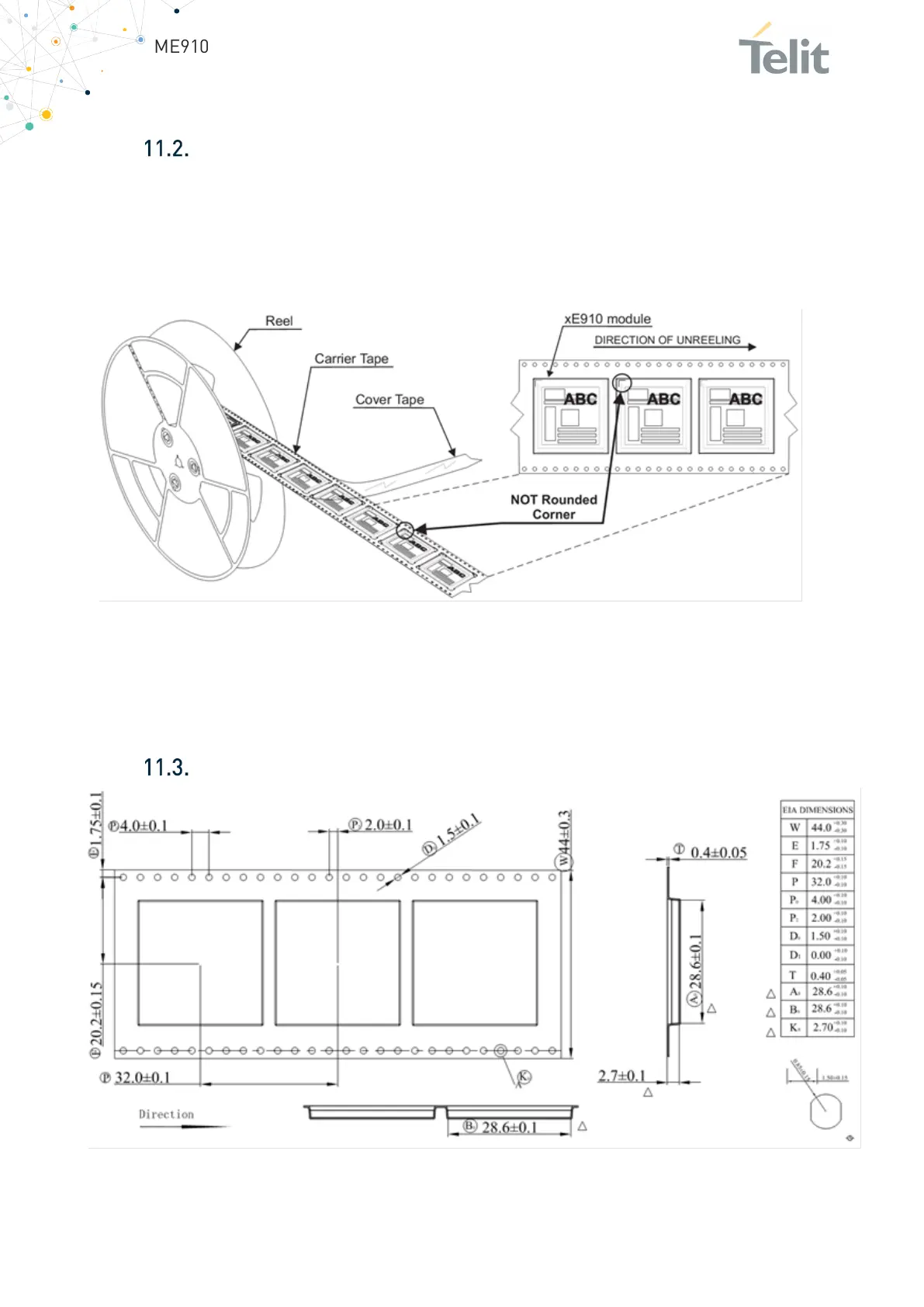 Telit Wireless Solutions ME910G1 - Reel; Carrier Tape Detail