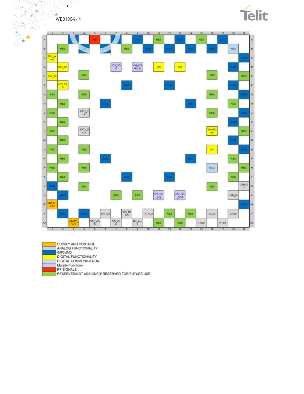 Figure 6: Telit WE310G4-P PIN Out Legend