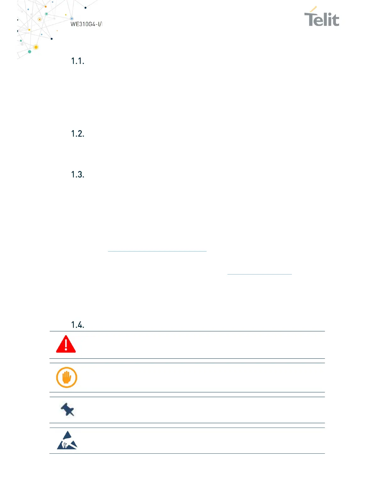 application, and manufacturing information about the Telit WE310G4-I/P Wi-Fi/BLE