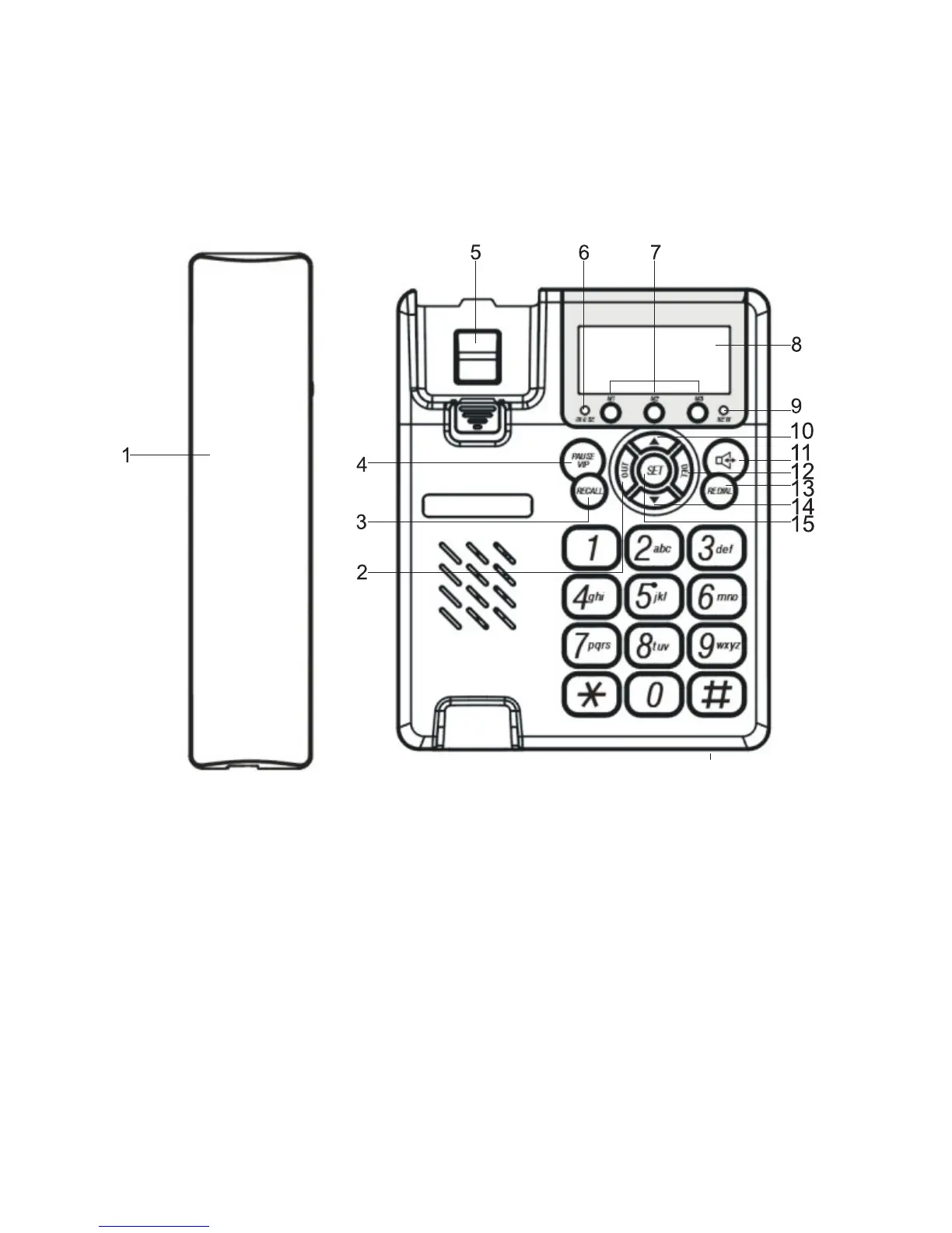 1. Handset 2. Out button