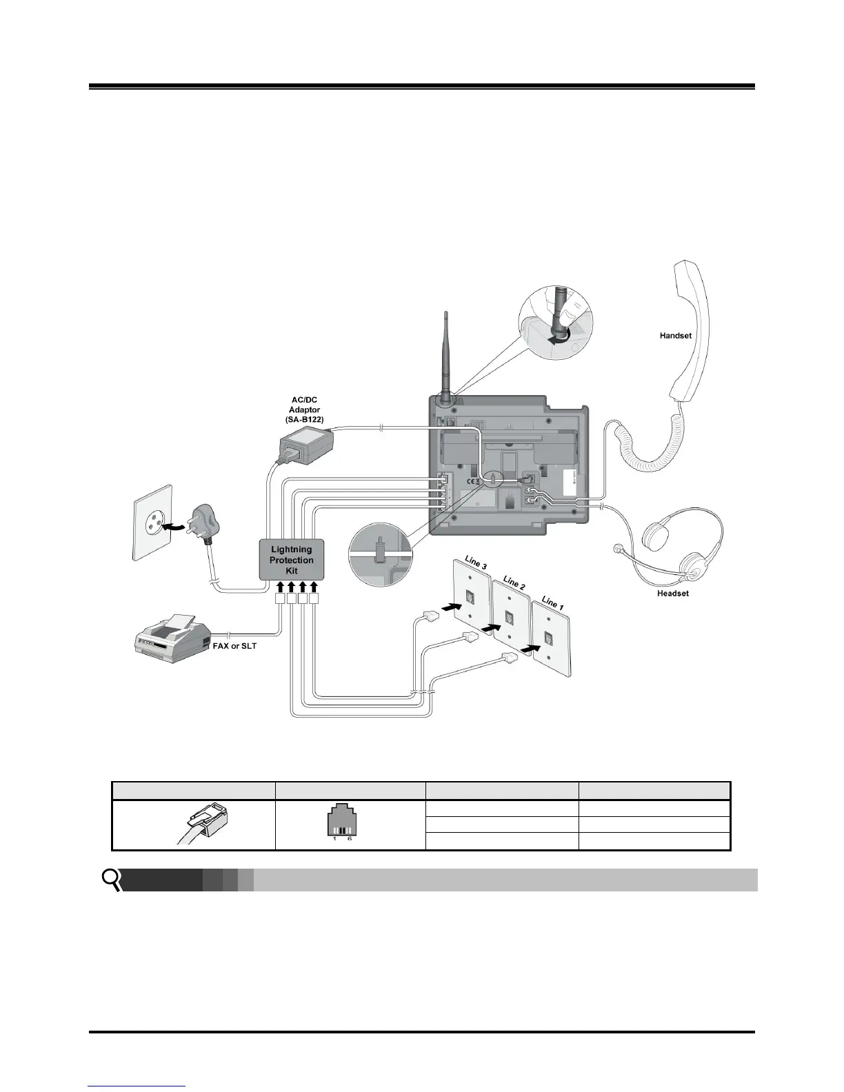 using the line cords provided. Connect the FAX machine (or SLT phone) line cord to the