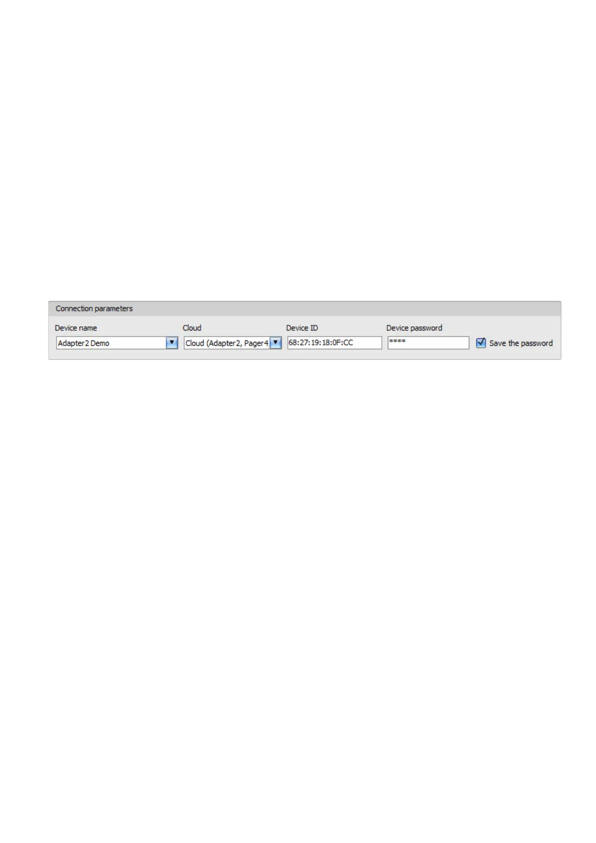 Device ID: the device identifier of the Adapter2 device to which you want to connect to.