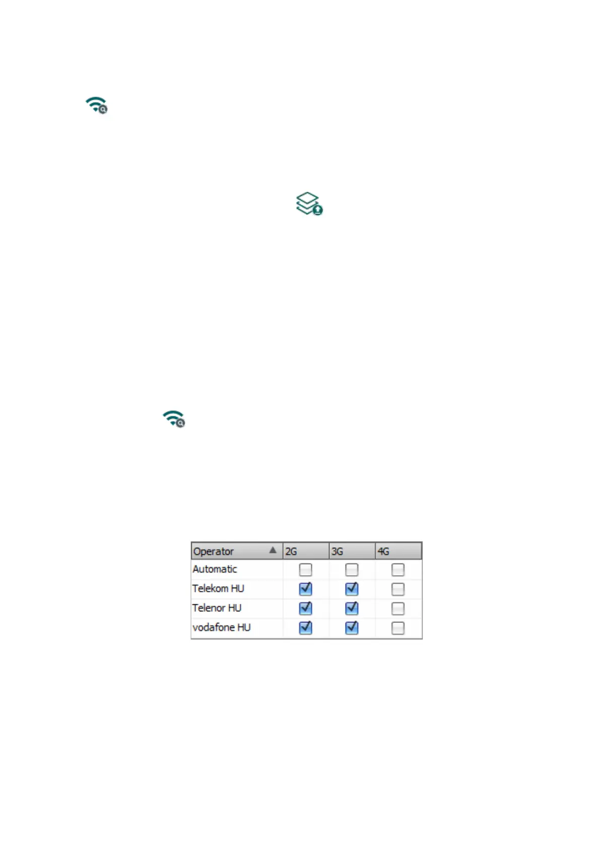 menu to force the modem to use the given operator. After clicking on this button, the