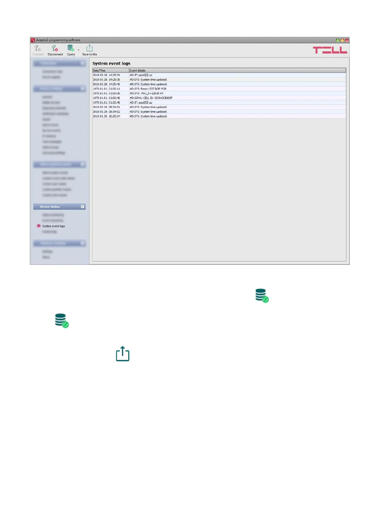 To download the system event logs from the device, open the “Read” drop-down menu, select