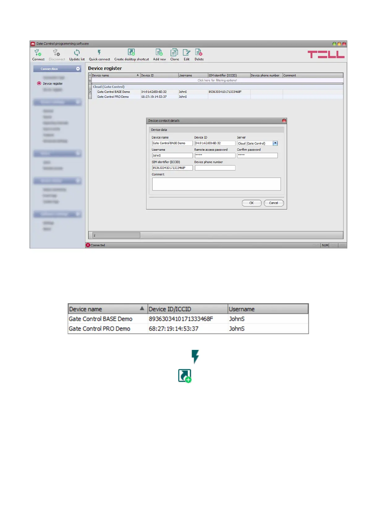 database and edit, delete, and clone entries for easy adding devices with similar contact details.