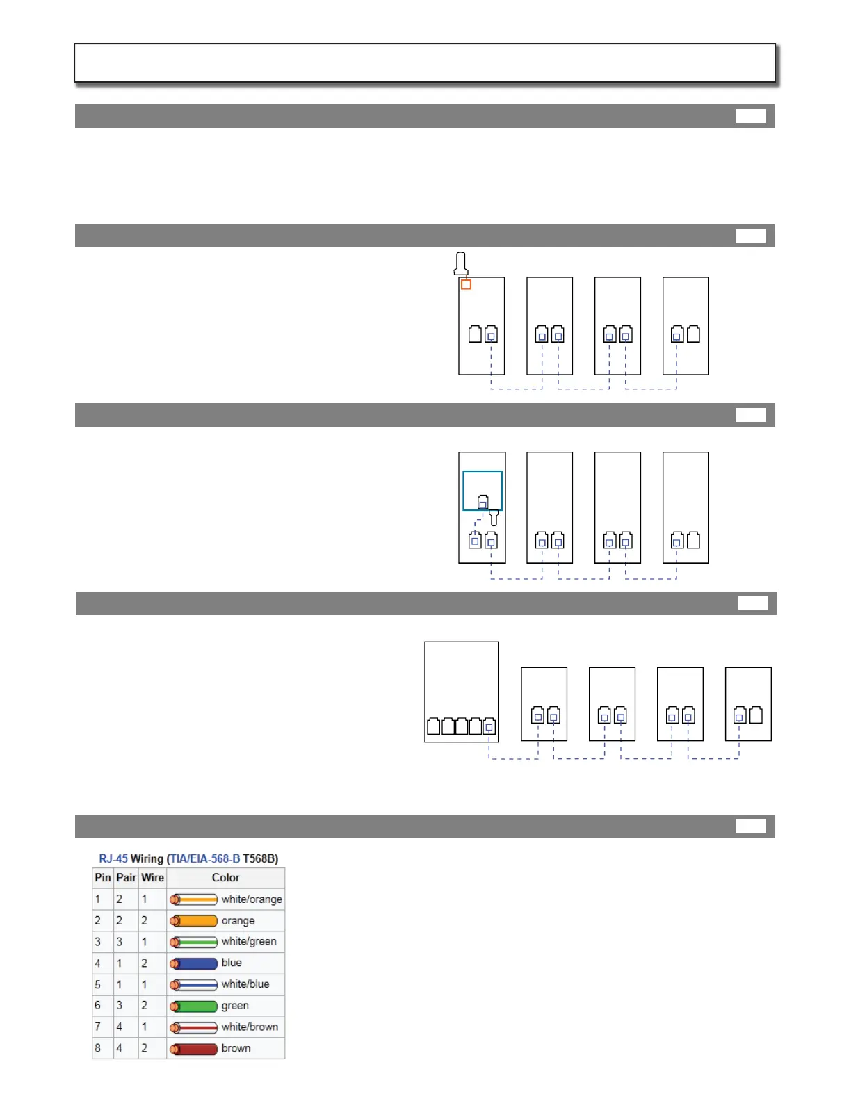 (T568B) wires are in the order 1, 2, 3, 6, 4, 5, 7, 8 on the modular jack at each