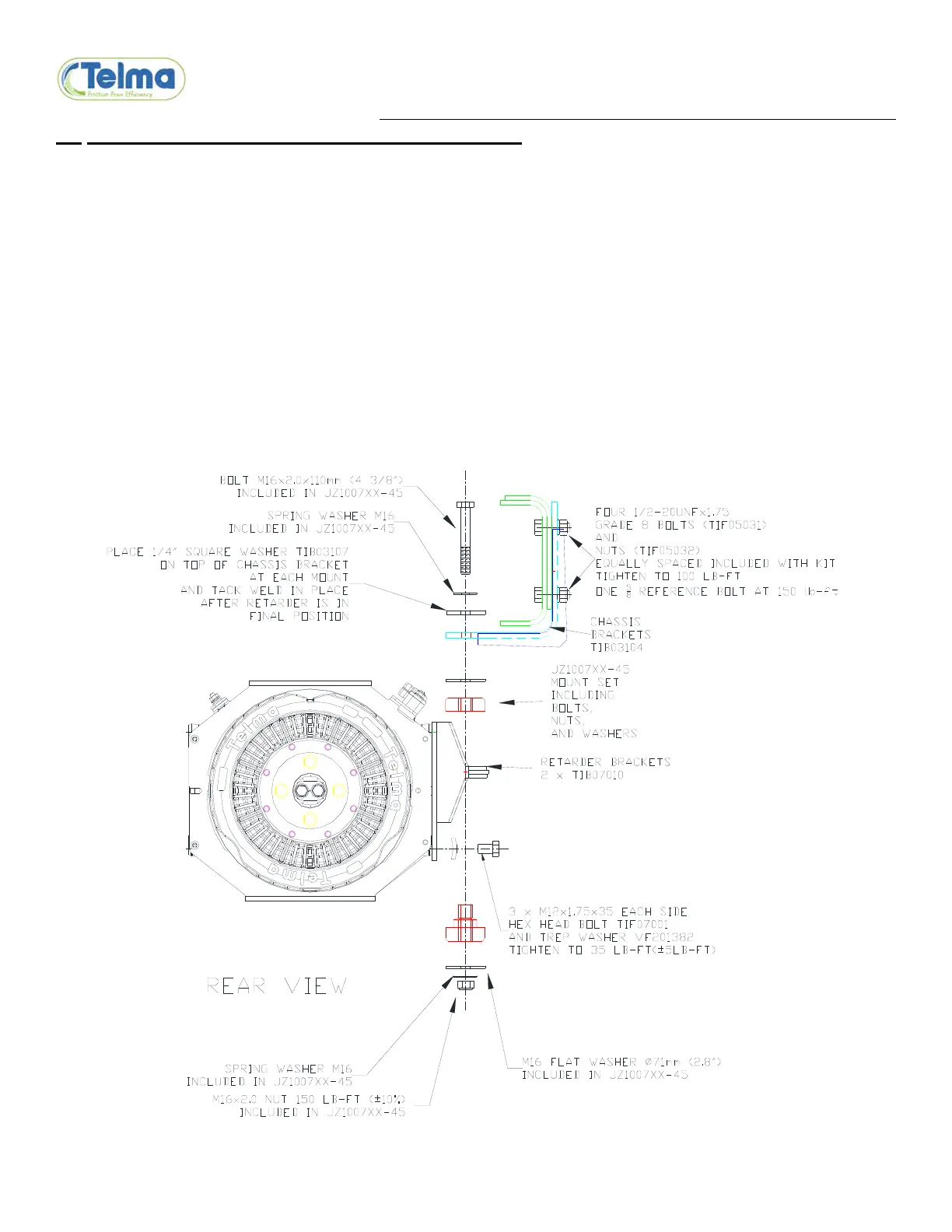 Use fasteners included in the rubber mount kit JZ1007XX-45 to attach the Telma and bracket