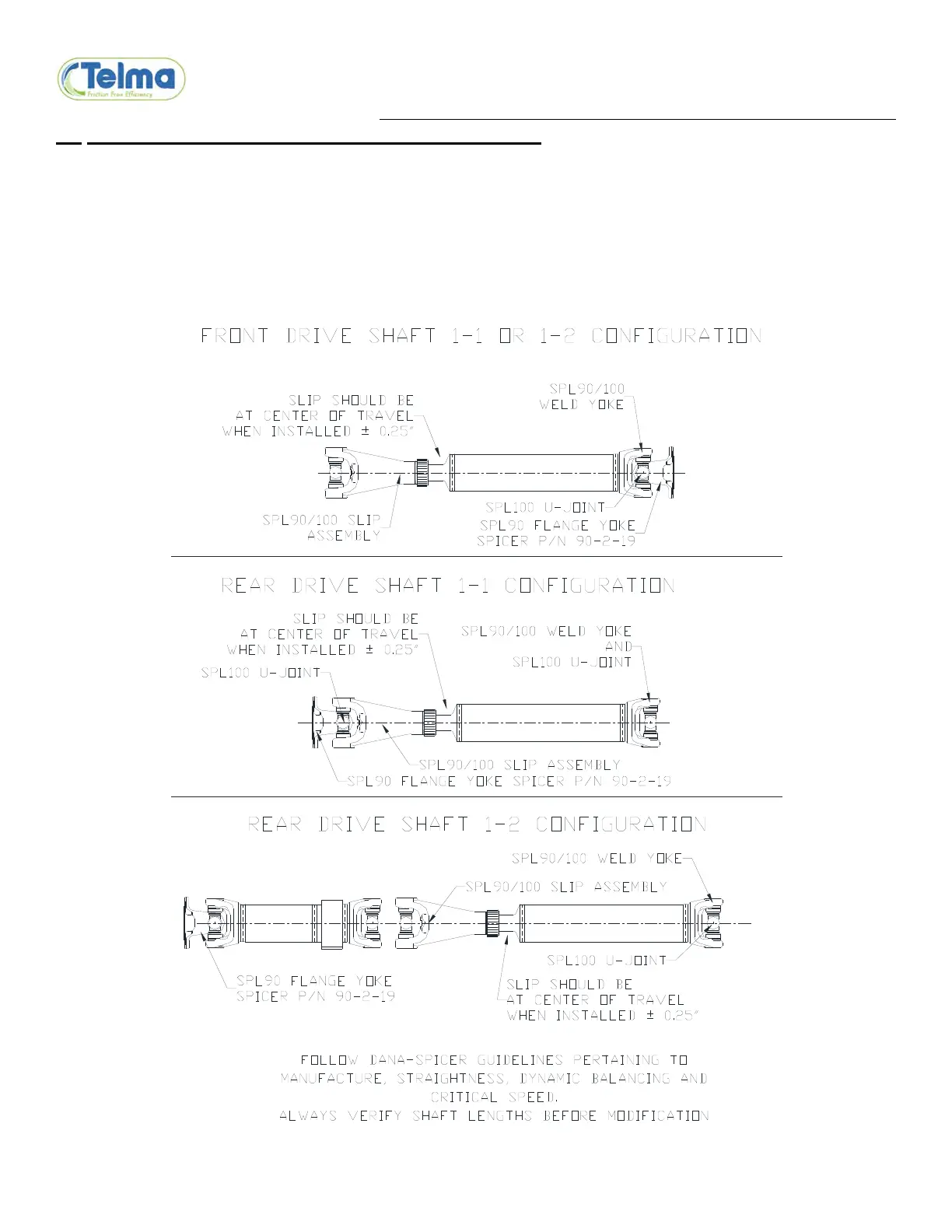 A slip assembly is required on each side of the Telma. The slip position should be at center of slip travel when the shaft