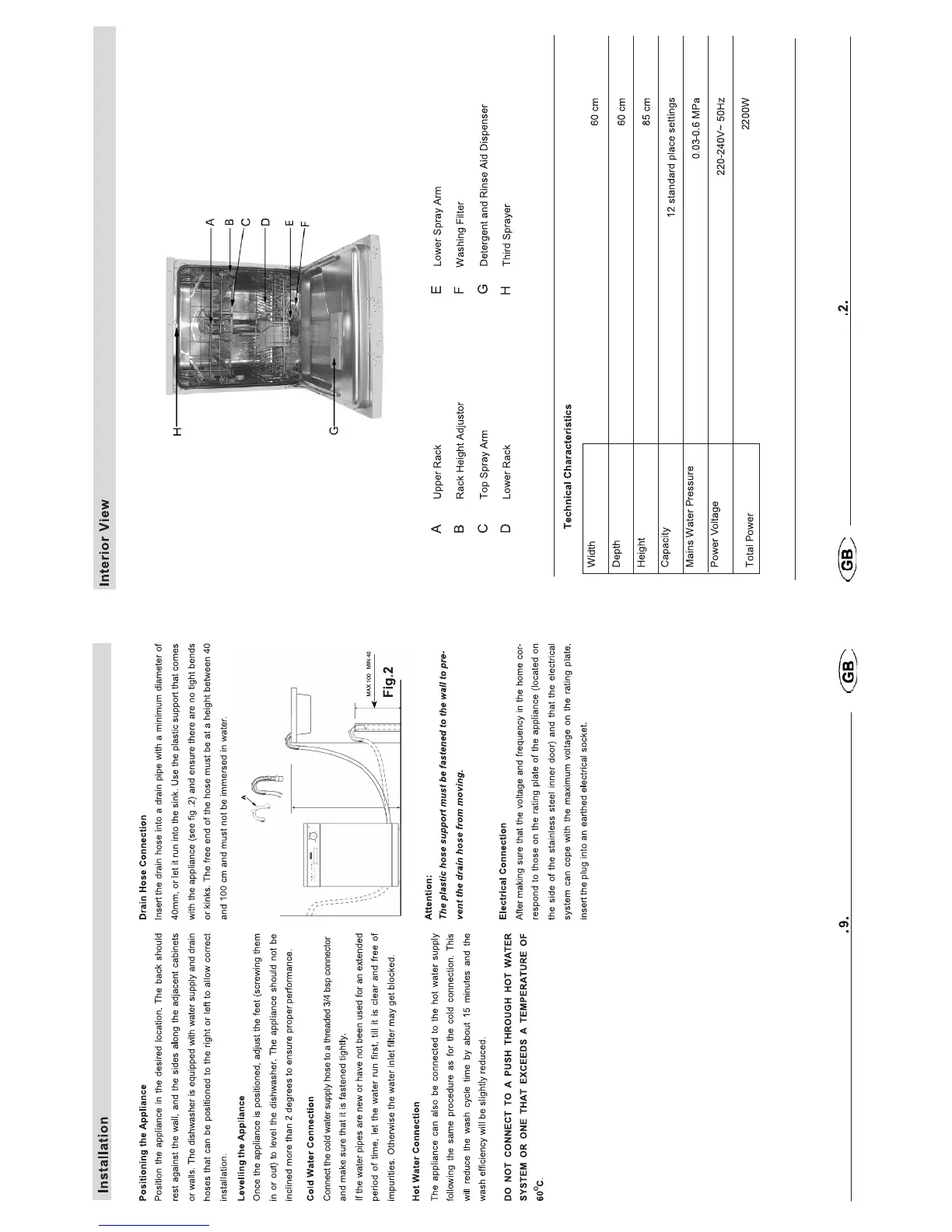 Telmann TEL12DWMS - Appliance Positioning and Levelling; Water and Drain Connections; Electrical Connection; Interior Components