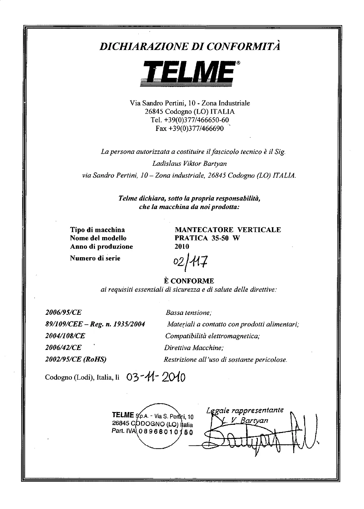 via Sandro Pertini, 10- Zona industriale, 26845 Codogno (LO) ITALIA.
