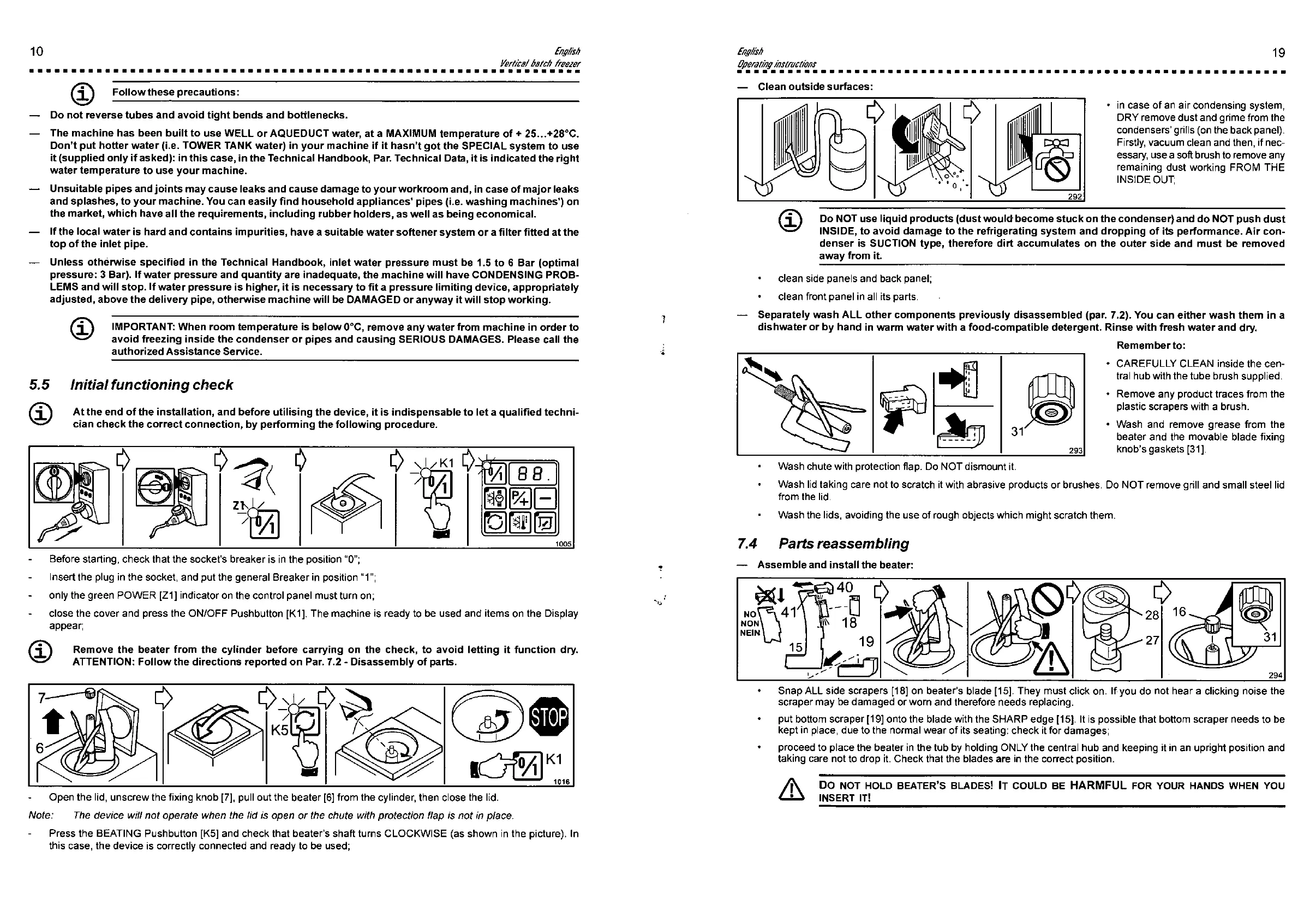 Remove the beater from the cylinder before carrying on the check, to avoid letting it function dry.