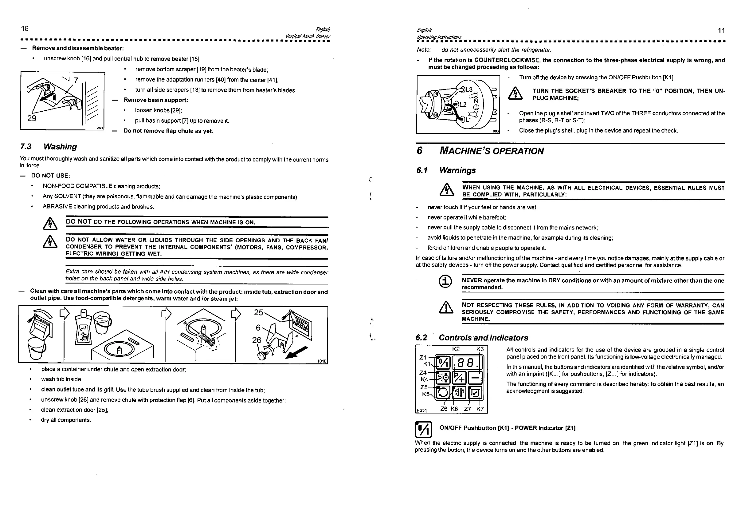 When the electric supply is connected, the machine is ready to be turned on, the green indicator light [Z1] is on. By