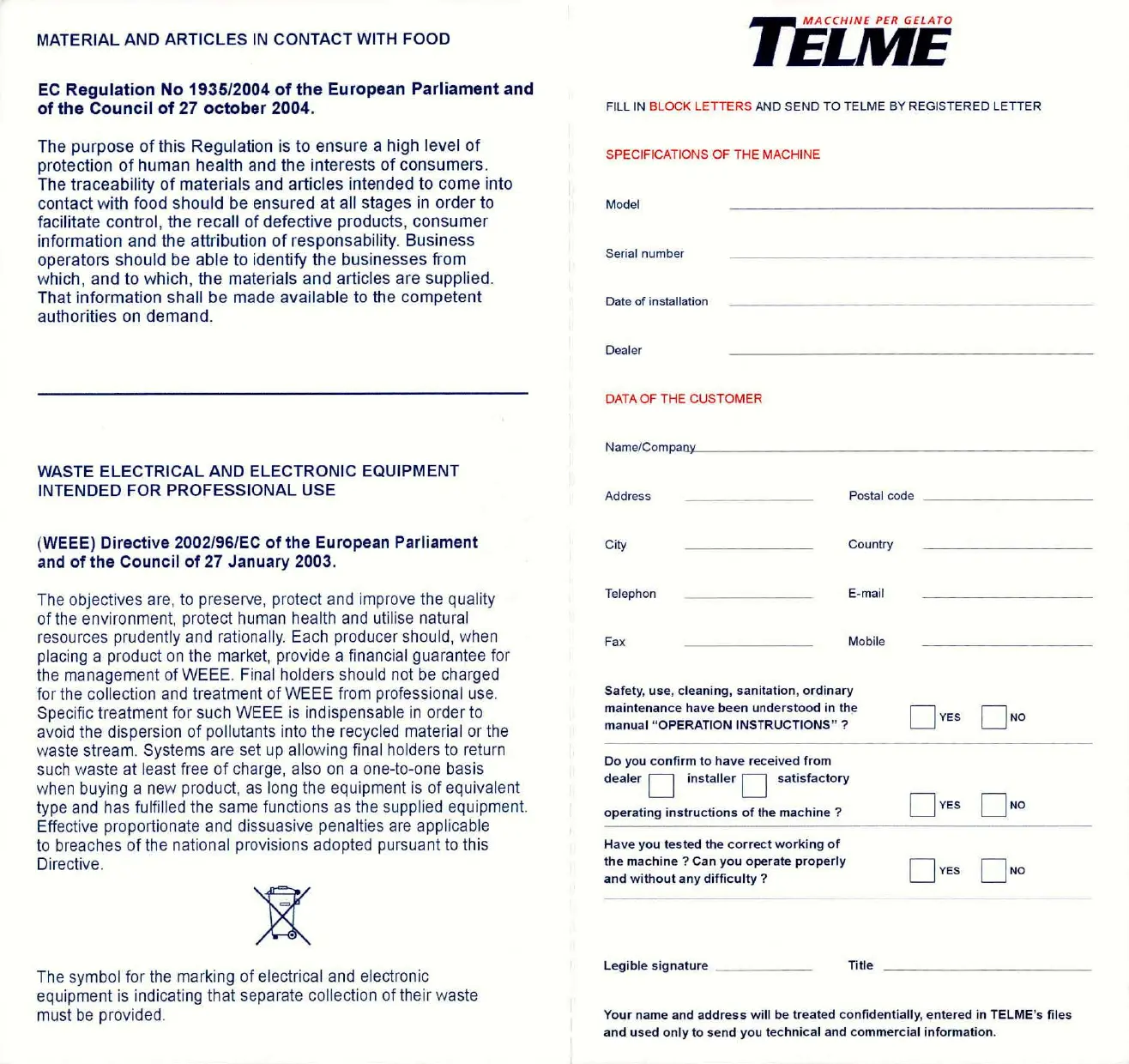 FILL IN BLOCK LETTERS AND SEND TO TELME BY REGISTERED LETTER