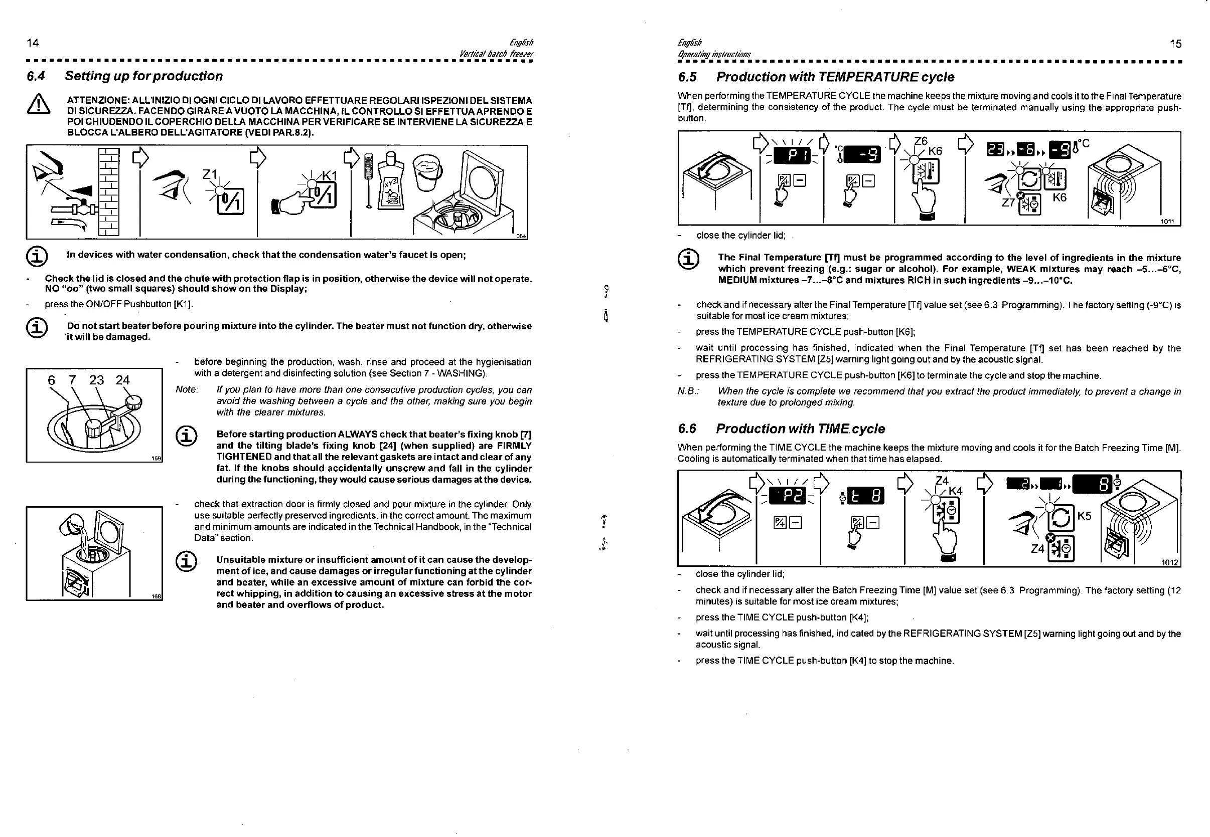 When performing the TIME CYCLE the machine keeps the mixture moving and cools it for the Batch Freezing Time [M].