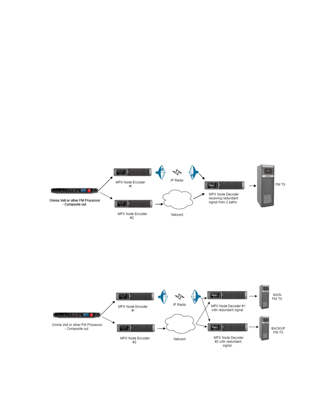 transmitters are both fed with signals served by separate network paths. (An external