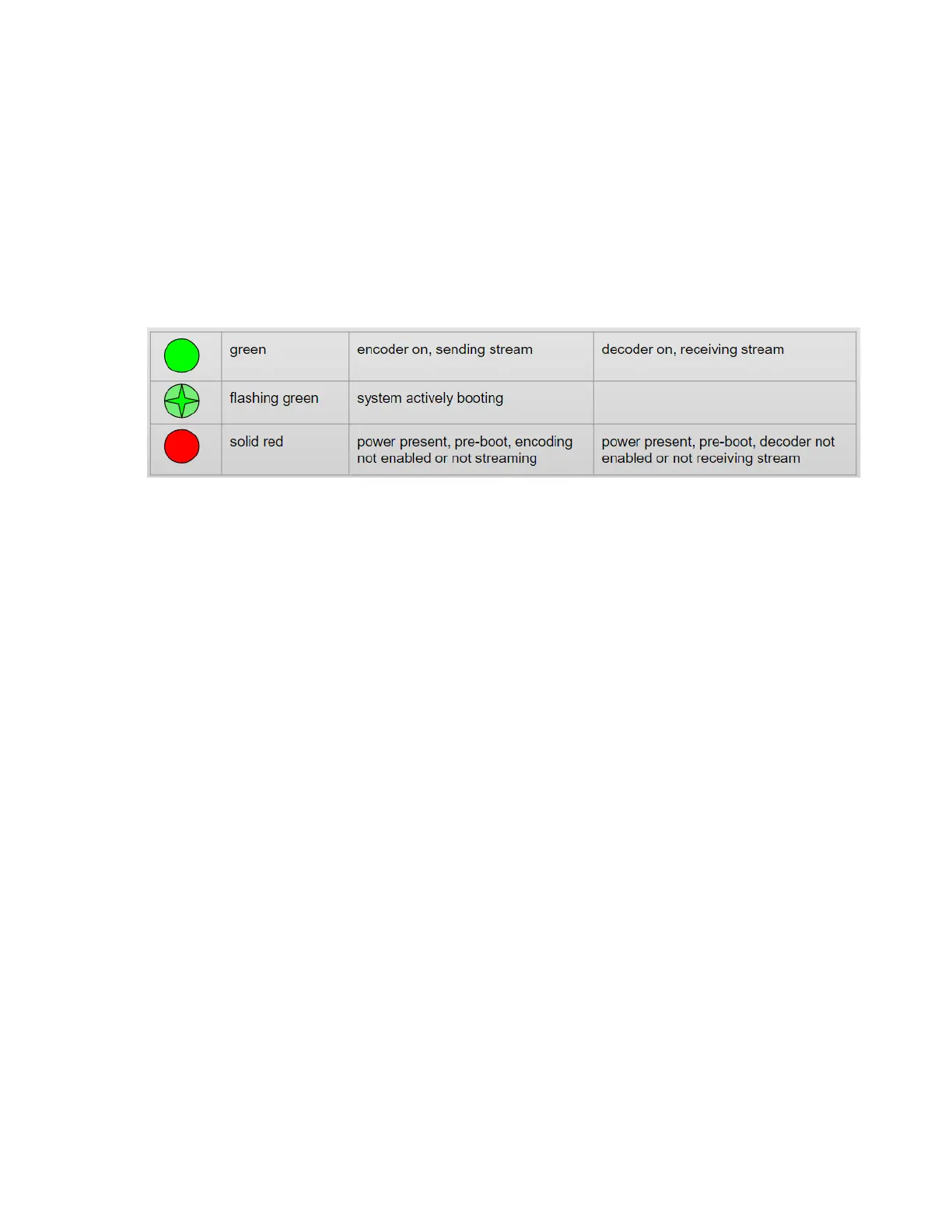 started and is encoding or decoding normally. Red indicates the unit has not finished