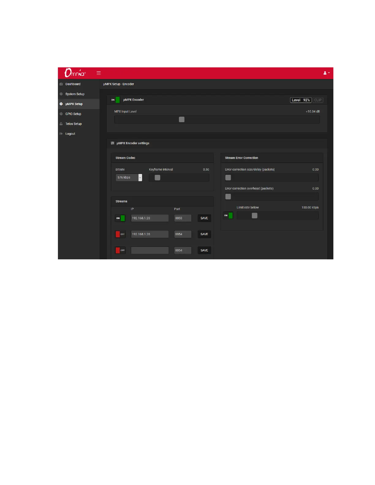Verify the μMPX Encoder is set to On in the field at the top of the screen. Unless En-